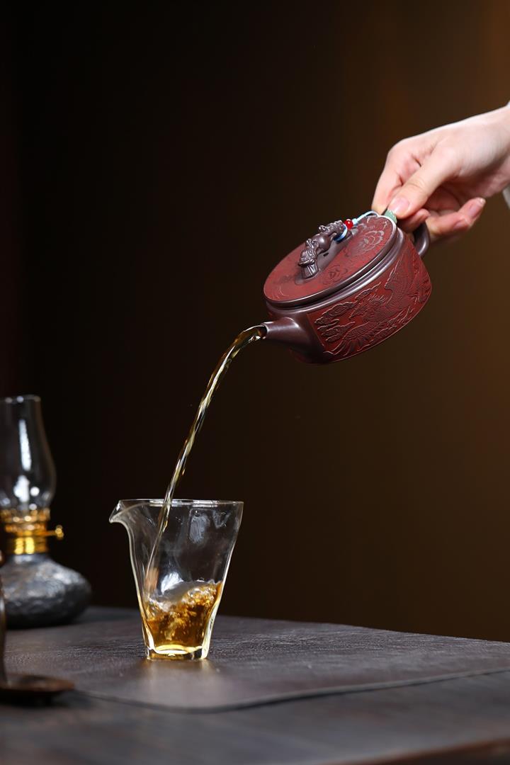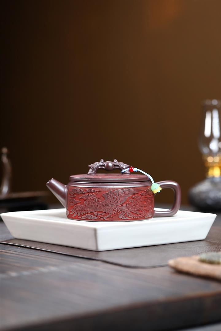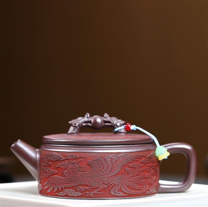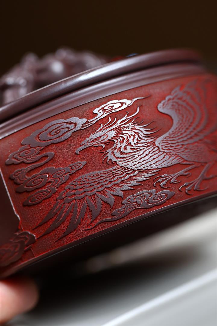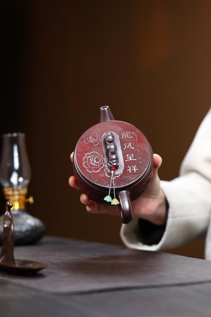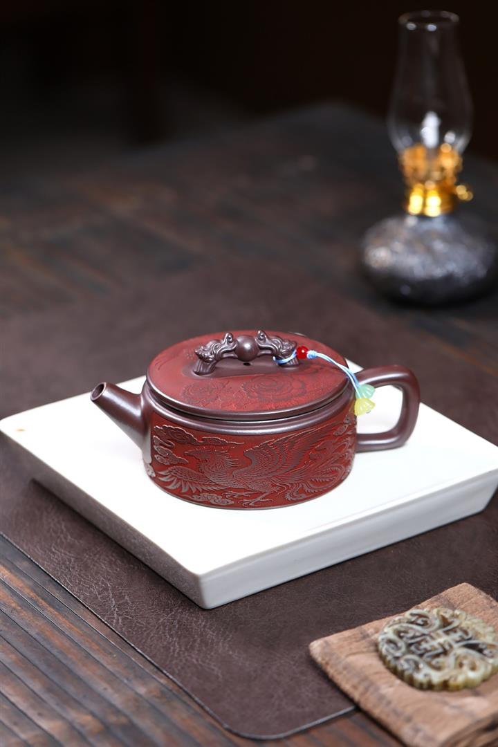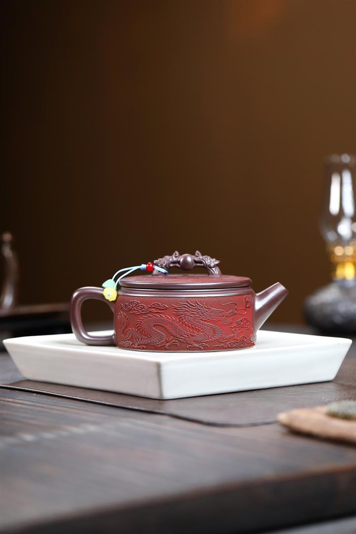 280cc原礦石紅泥龍鳳呈祥漢瓦茶壺POT9594