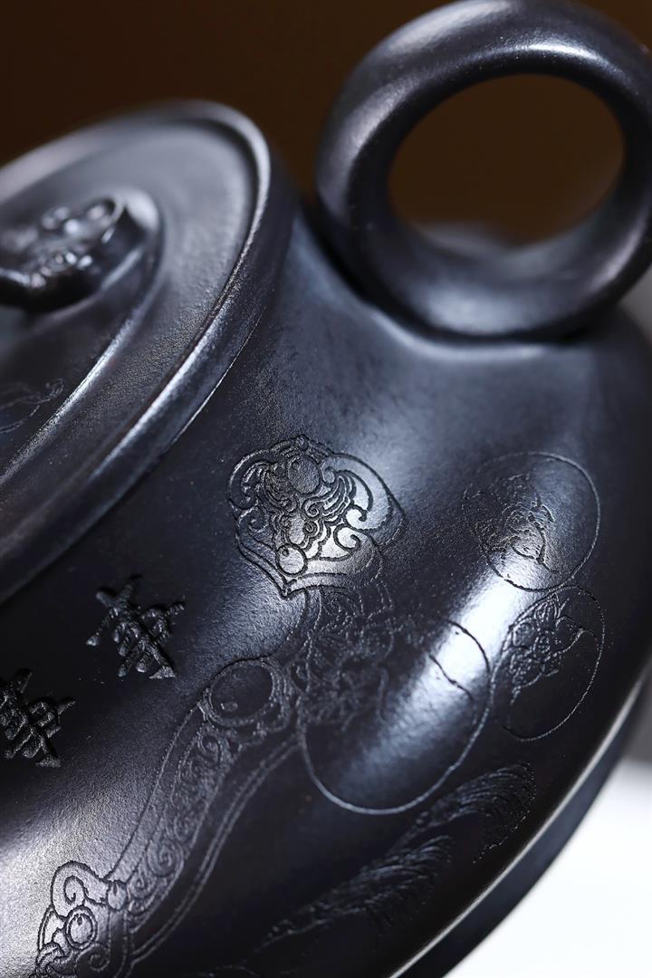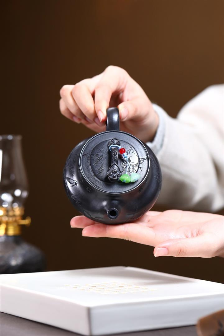 210cc原礦玄鐵石黃太湖石漢瓦泡茶壺POT9602