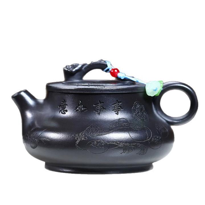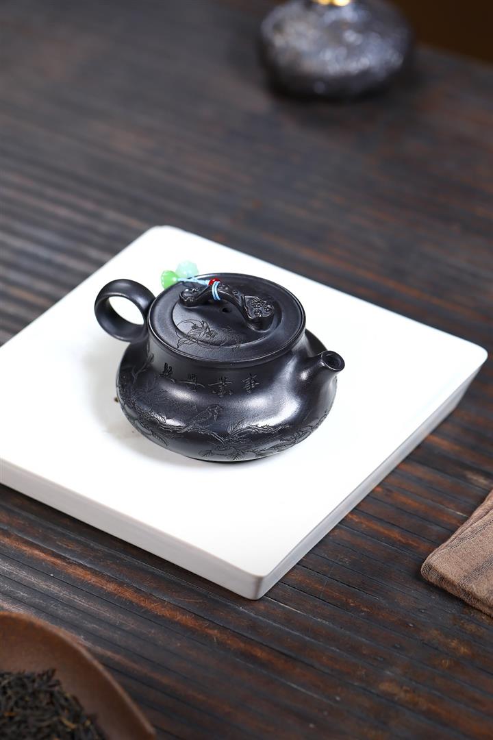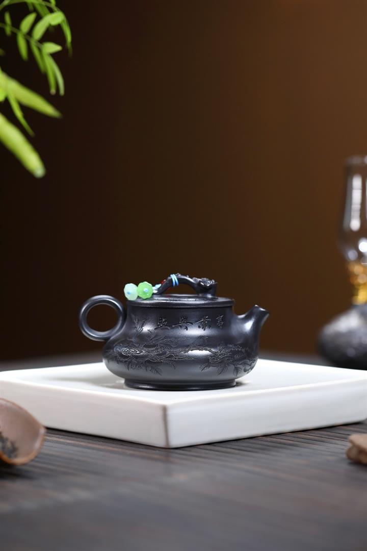 400cc原礦高溫段泥刻繪靈芝泡茶壺POT9597