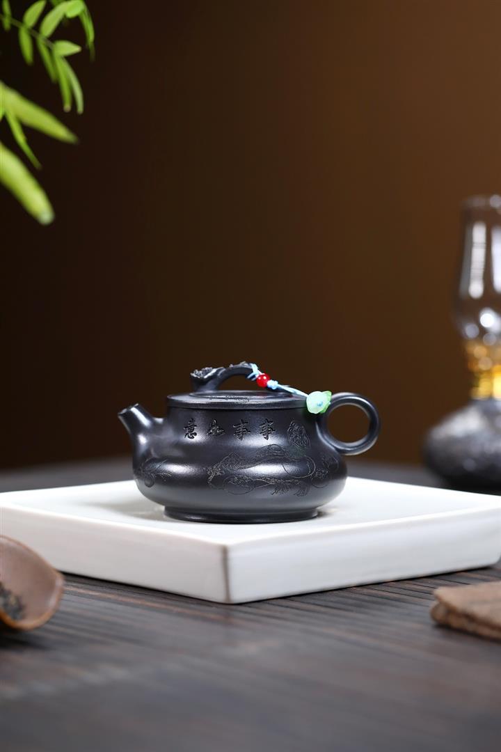 【作品介紹】此款壺形線條流暢,壺把,壺嘴,壺身壹氣呵成栩栩如生,是收藏把玩的好壺,泥料色澤古樸典雅,日久使用,漸露鋒芒,養成變化快,溫潤莊重,用其泡茶,使用的年代久,壺身就溫潤,泡出來的茶湯也就醇郁芳馨。