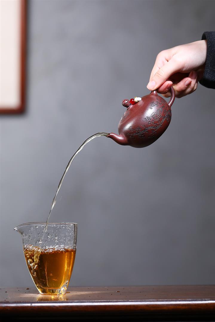 【泥料特點】砂土氣重,似淳實農民,日久使用,漸露鋒芒,養成變化,溫潤莊重。紫砂是壹種雙重氣孔結構的多孔性材質,氣孔微細,密度高。用紫砂壺沏茶,不失原味,且香不渙散,得茶之真香真味。紫砂使用越久,壺身色澤越發光亮照人,氣韻溫雅。紫砂壺長久使用器身會因撫摸擦拭,變得越發溫潤光澤。