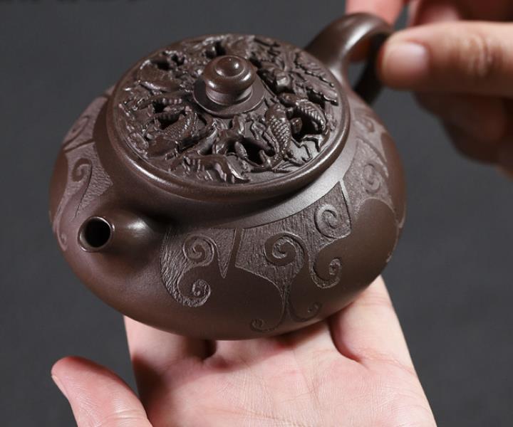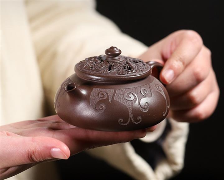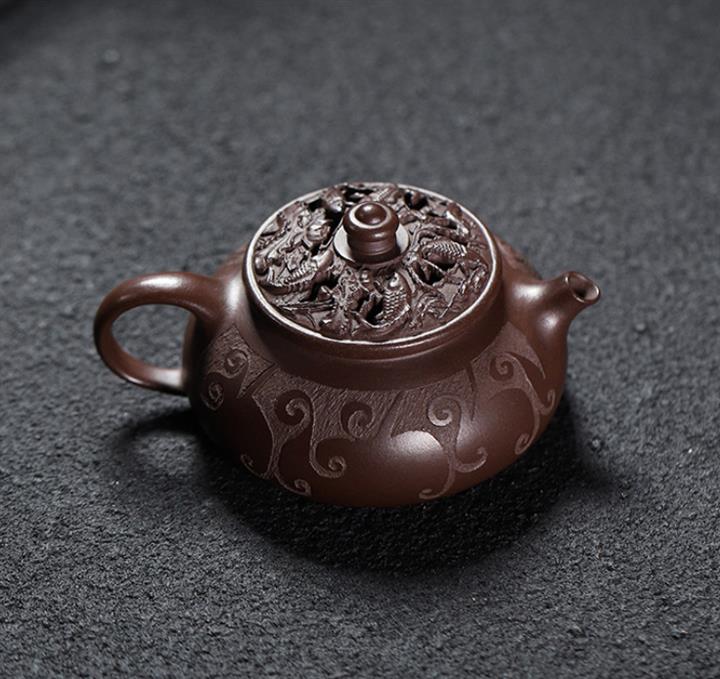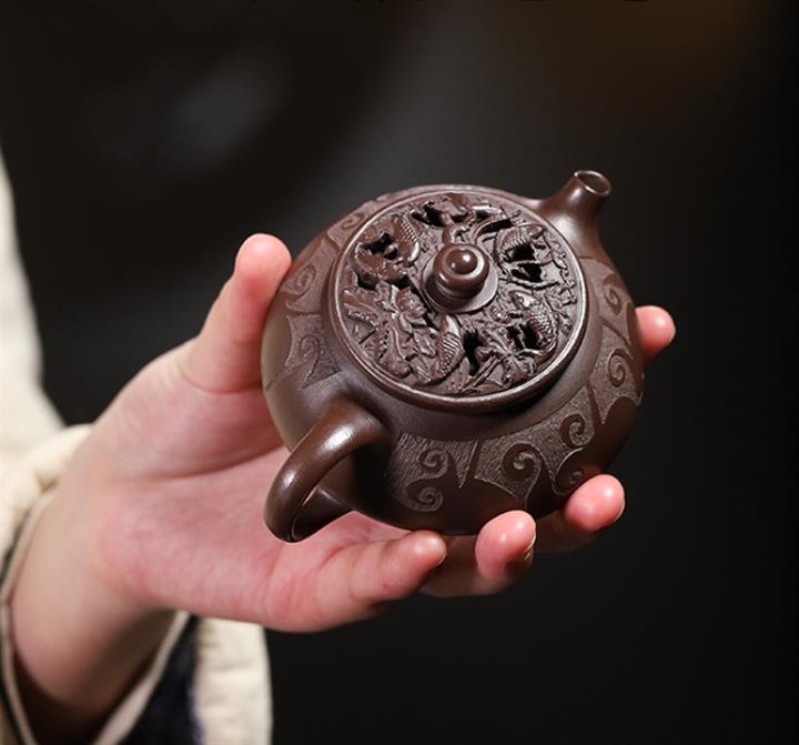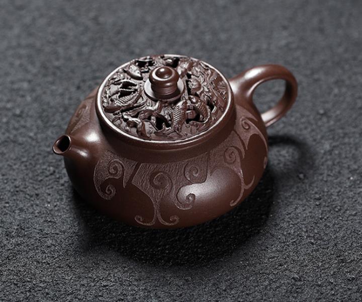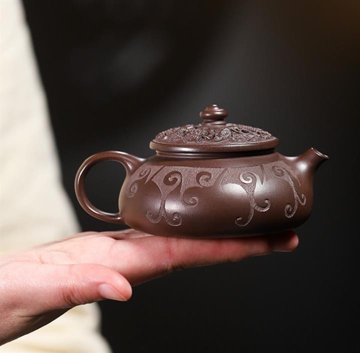 380cc原礦紫玉金砂紫玉竹影明爐泡茶壺POT9626