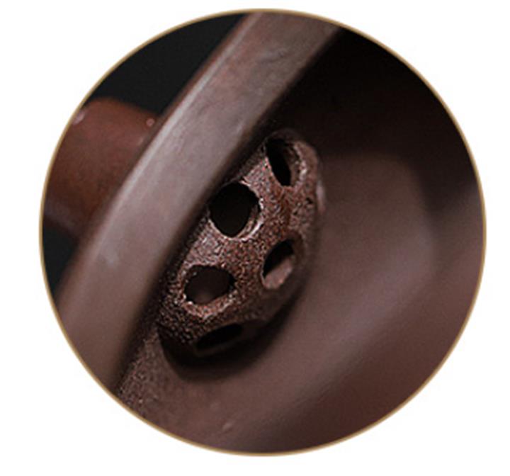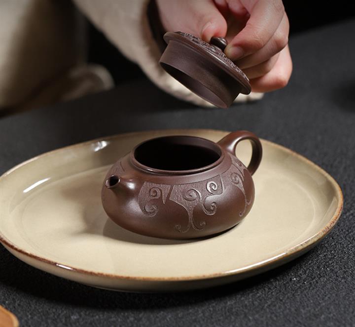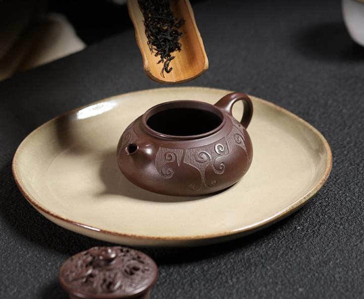 【泥料特點】砂土氣重,似淳實農民,日久使用,漸露鋒芒,養成變化,溫潤莊重。紫砂是壹種雙重氣孔結構的多孔性材質,氣孔微細,密度高。用紫砂壺沏茶,不失原味,且香不渙散,得茶之真香真味。紫砂使用越久,壺身色澤越發光亮照人,氣韻溫雅。紫砂壺長久使用器身會因撫摸擦拭,變得越發溫潤光澤。