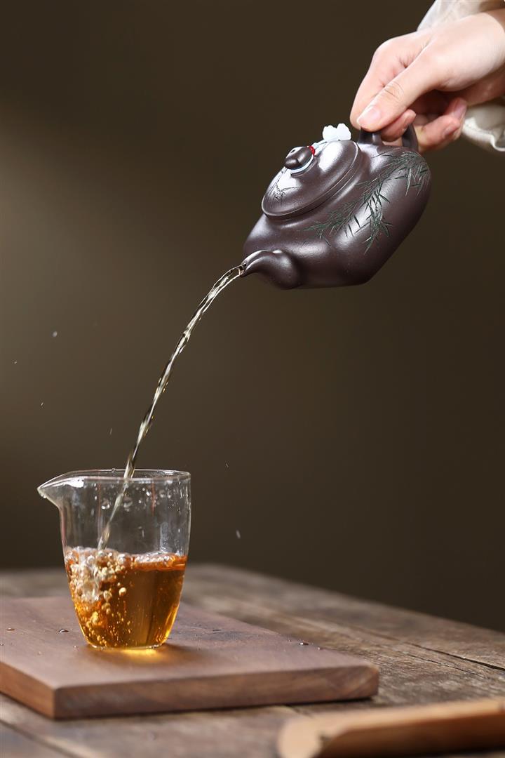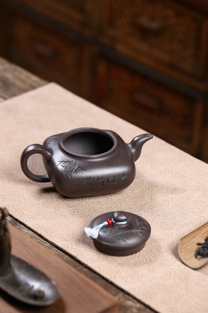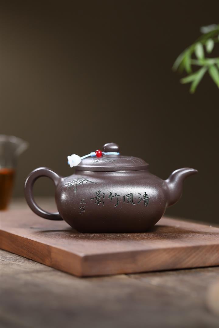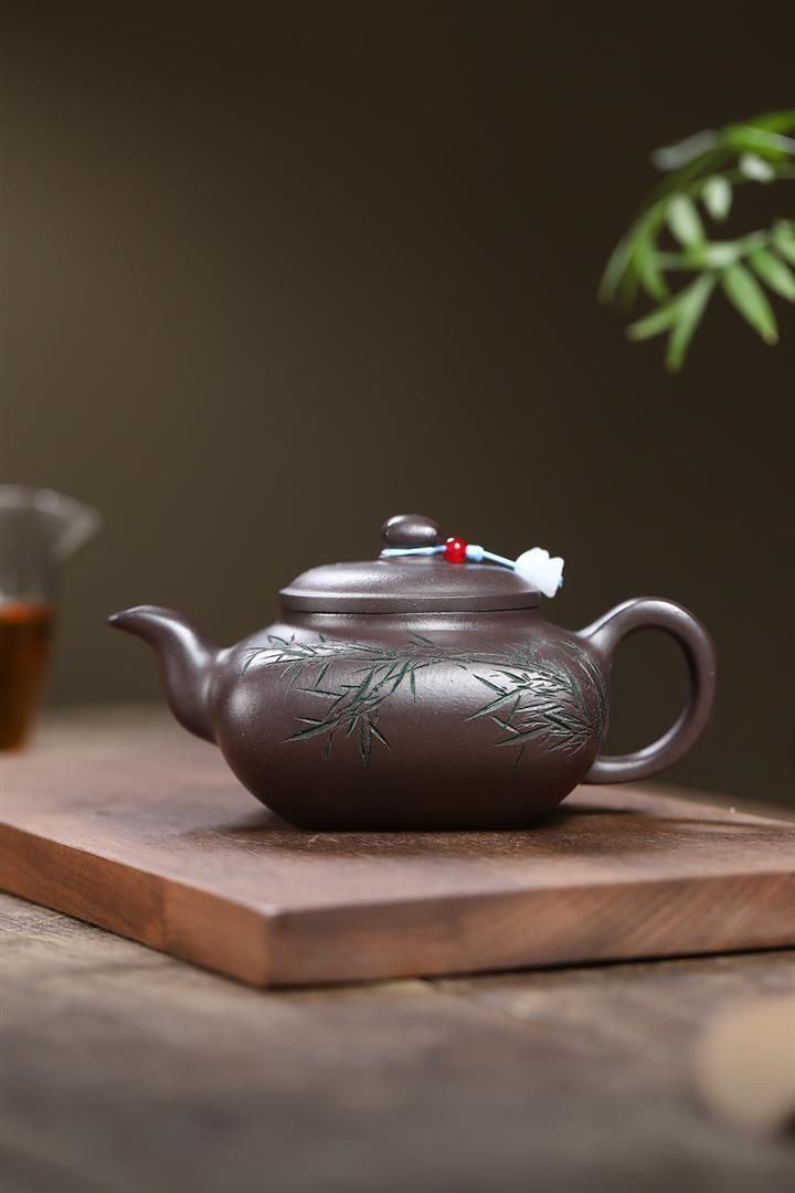 380cc原礦紫玉金砂紫玉竹影明爐泡茶壺POT9626