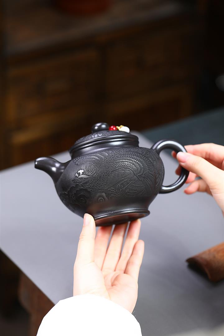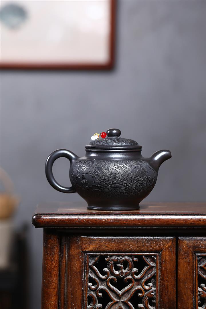 310cc原礦家藏青段高溫燒事事如意泡茶壺POT9644