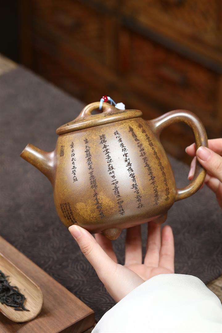 【作品介紹】此款壺形線條流暢,壺把,壺嘴,壺身壹氣呵成栩栩如生,是收藏把玩的好壺,泥料色澤古樸典雅,日久使用,漸露鋒芒,養成變化快,溫潤莊重,用其泡茶,使用的年代久,壺身就溫潤,泡出來的茶湯也就醇郁芳馨。