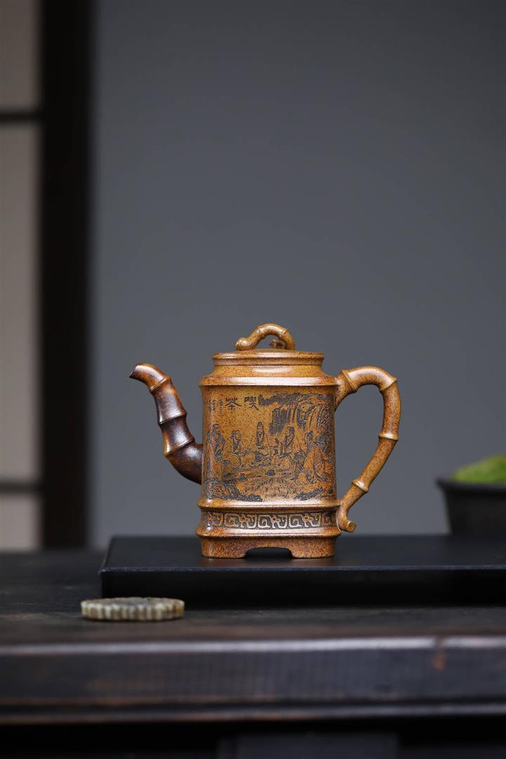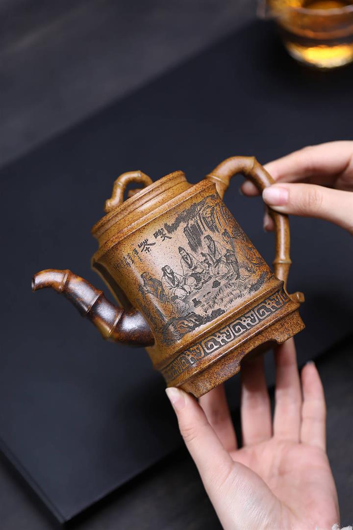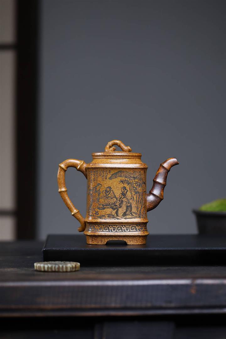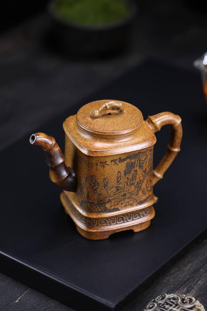 300cc龍骨金砂特高溫燒四方竹段泡茶壺POT9649