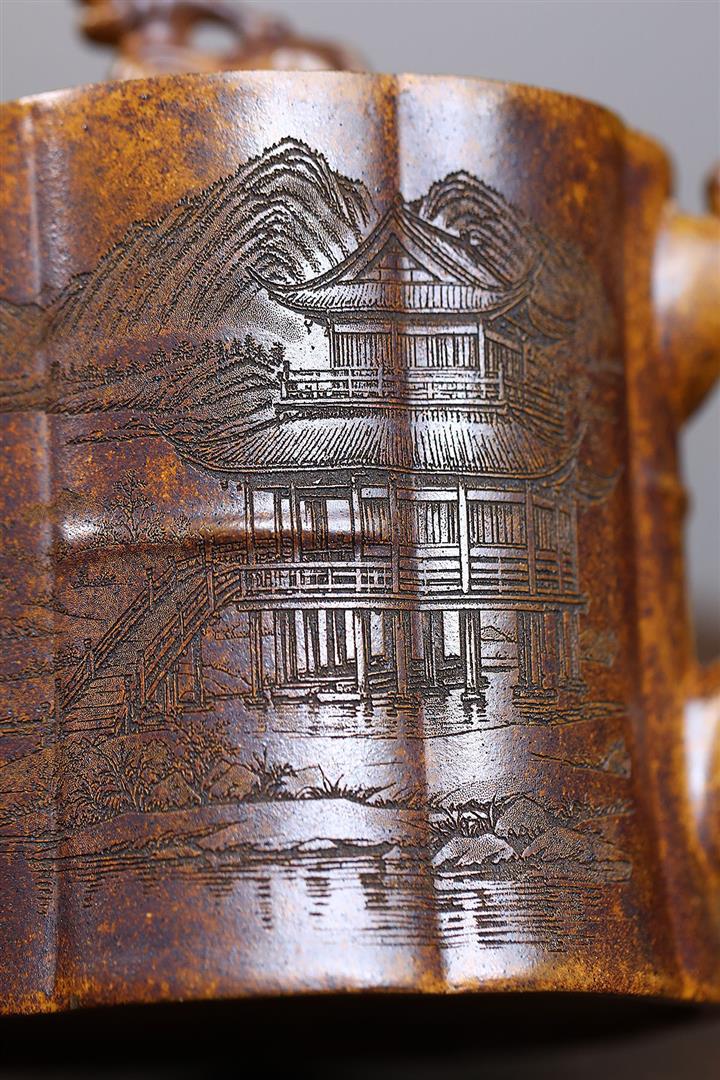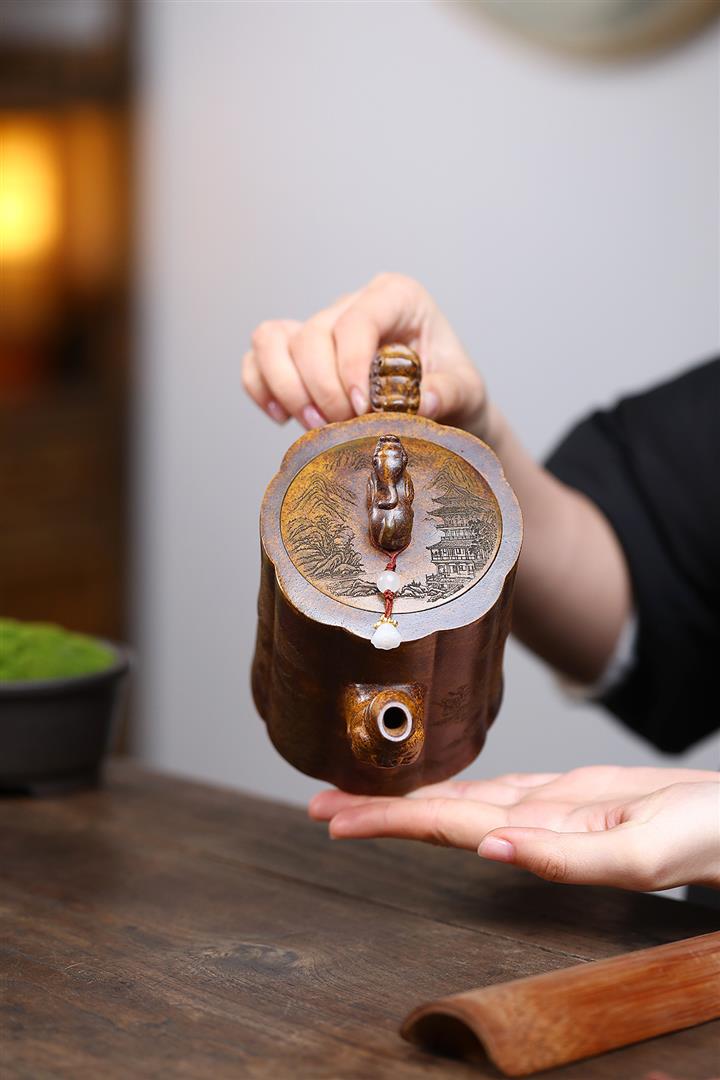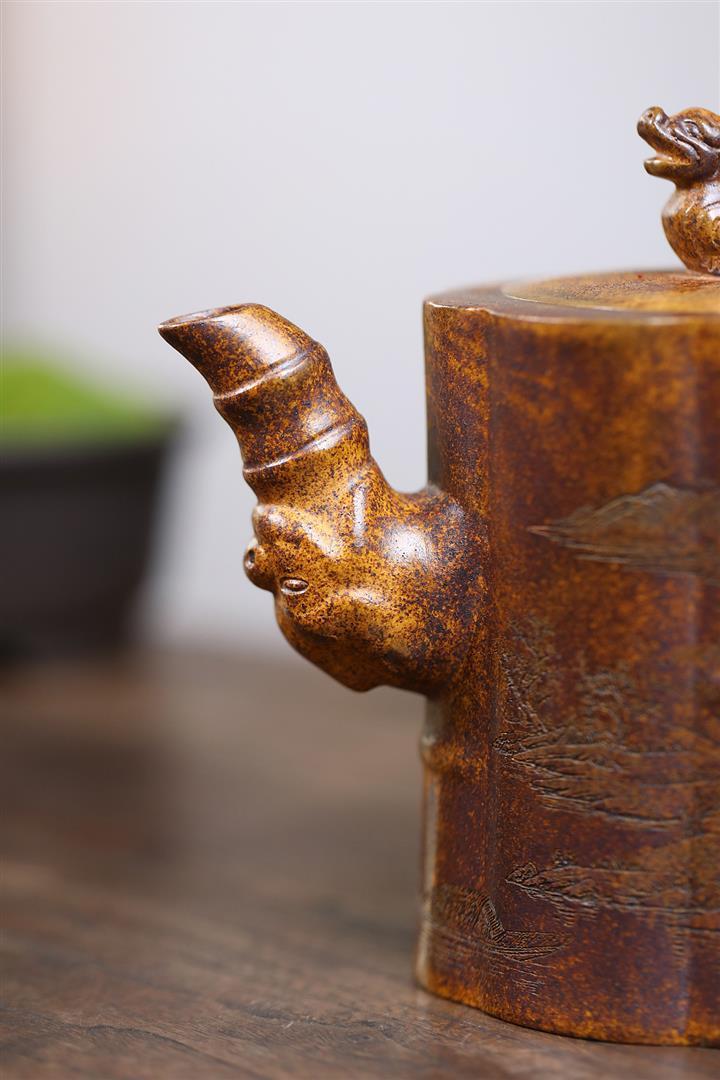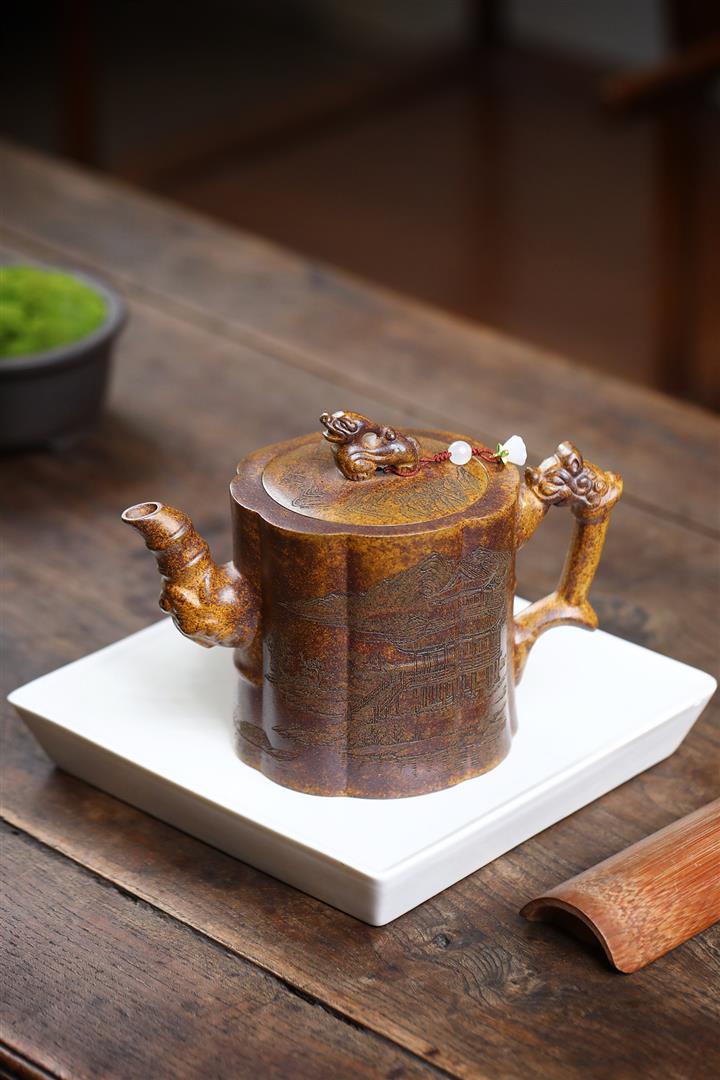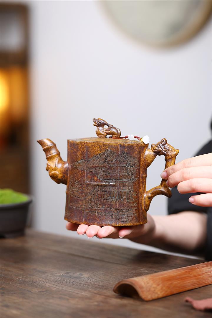 280cc原礦龍骨金沙特高溫柴燒四方竹鼎泡茶壺POT9661