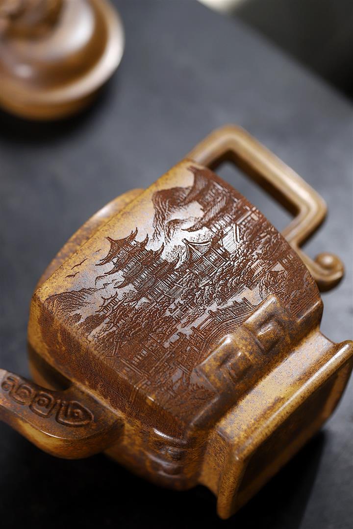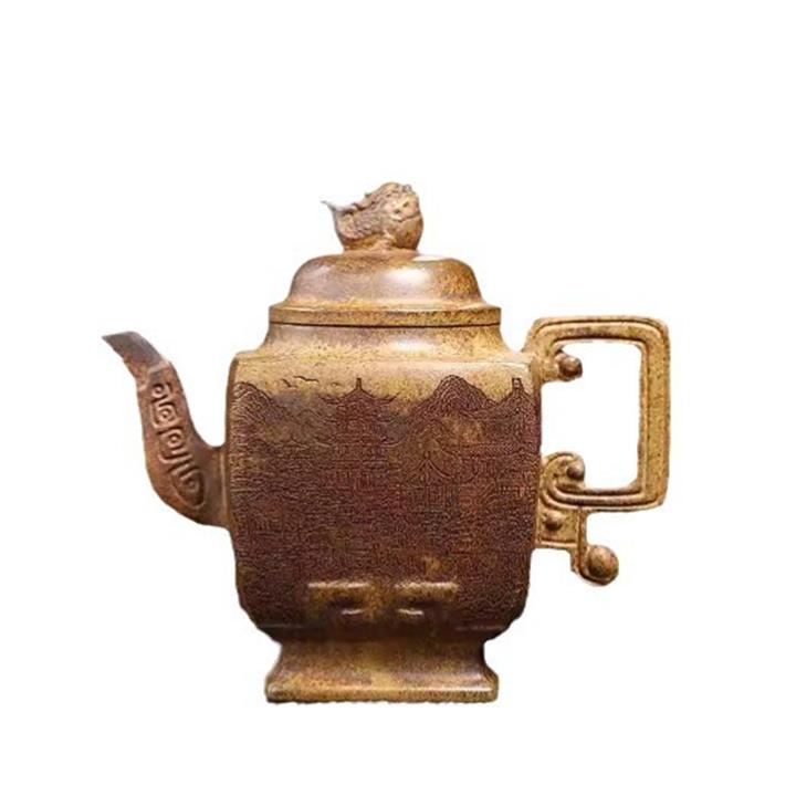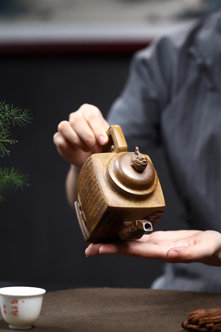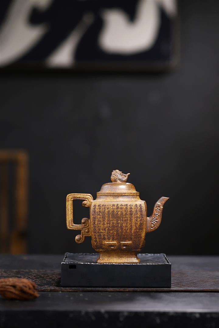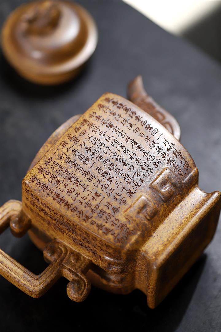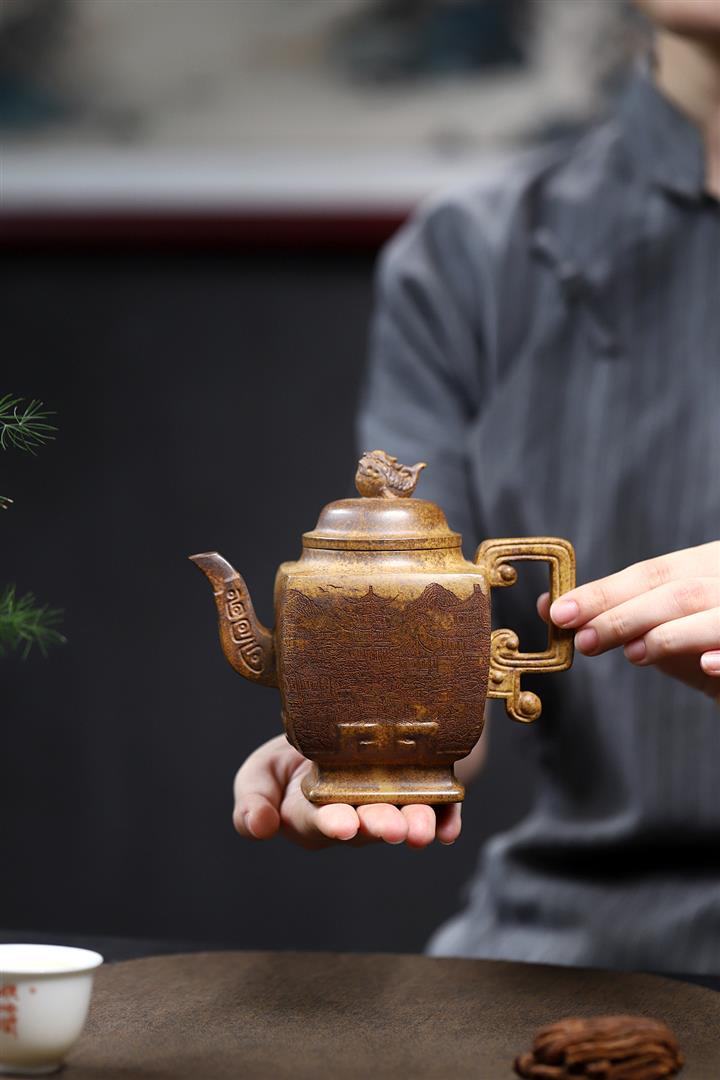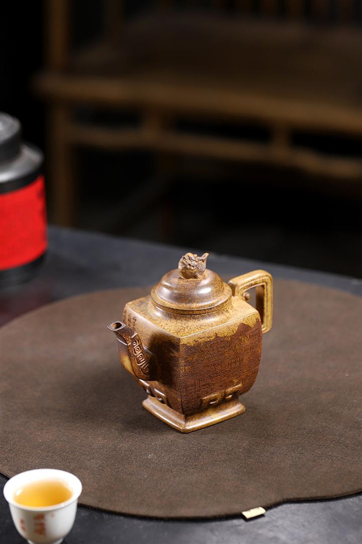 280cc原礦龍骨金沙特高溫柴燒四方竹鼎泡茶壺POT9661