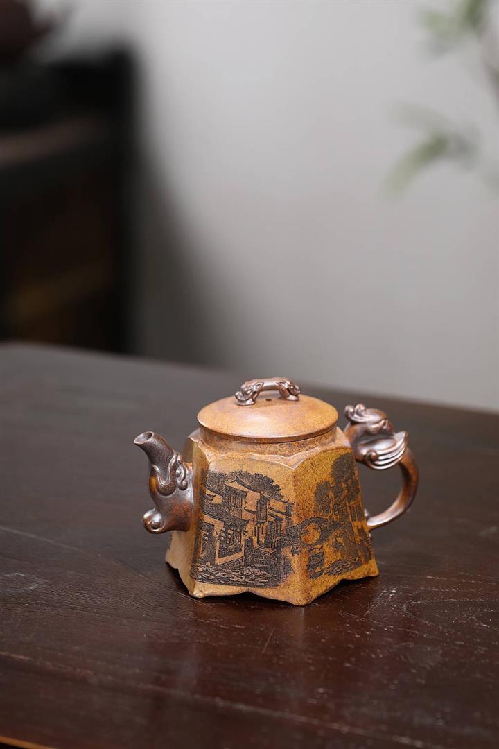280cc原礦龍骨金沙特高溫柴燒四方竹鼎泡茶壺POT9661