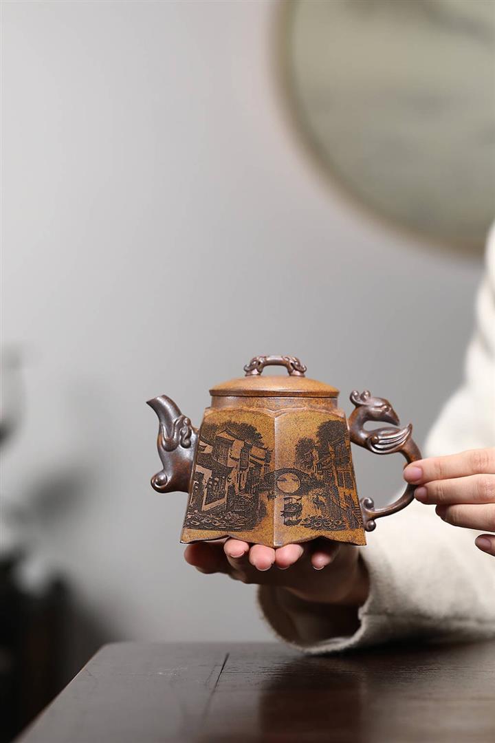 【作品介紹】此款壺形線條流暢,壺把,壺嘴,壺身壹氣呵成栩栩如生,是收藏把玩的好壺,泥料色澤古樸典雅,日久使用,漸露鋒芒,養成變化快,溫潤莊重,用其泡茶,使用的年代久,壺身就溫潤,泡出來的茶湯也就醇郁芳馨。