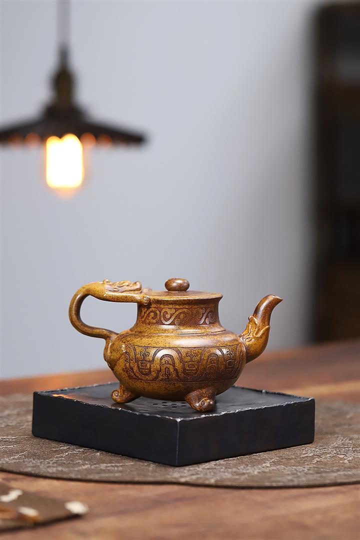 280cc原礦龍骨金沙特高溫柴燒四方竹鼎泡茶壺POT9661