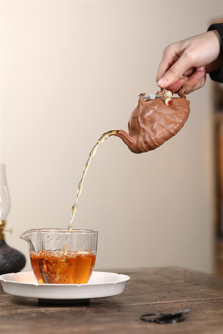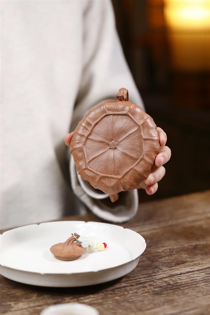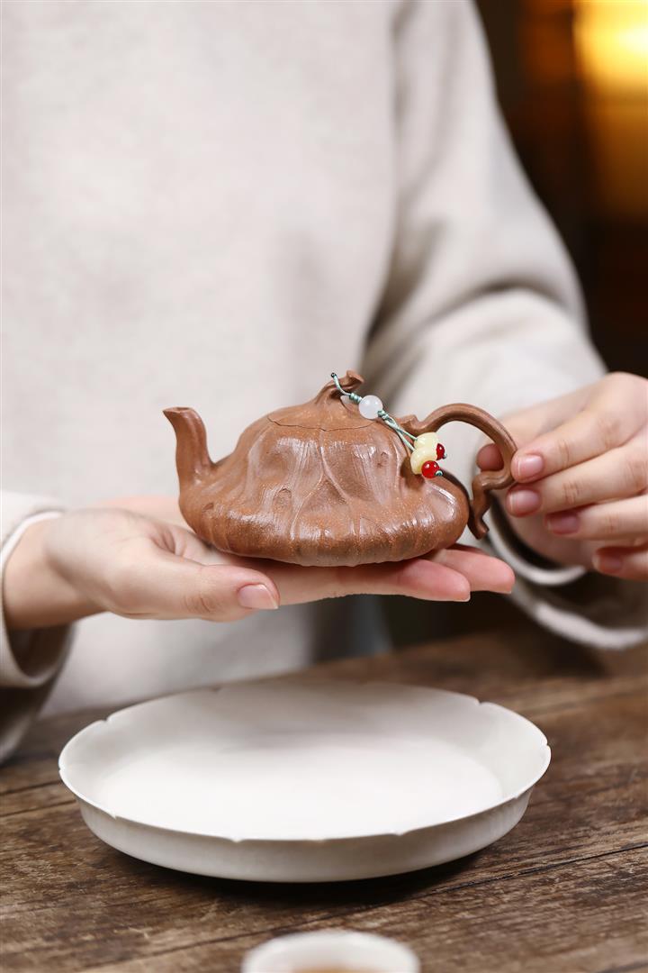 【泥料特點】砂土氣重,似淳實農民,日久使用,漸露鋒芒,養成變化,溫潤莊重。紫砂是壹種雙重氣孔結構的多孔性材質,氣孔微細,密度高。用紫砂壺沏茶,不失原味,且香不渙散,得茶之真香真味。紫砂使用越久,壺身色澤越發光亮照人,氣韻溫雅。紫砂壺長久使用器身會因撫摸擦拭,變得越發溫潤光澤。