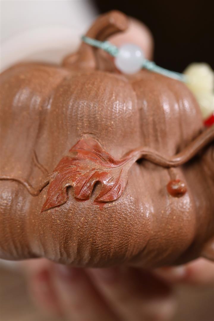 【泥料特點】砂土氣重,似淳實農民,日久使用,漸露鋒芒,養成變化,溫潤莊重。紫砂是壹種雙重氣孔結構的多孔性材質,氣孔微細,密度高。用紫砂壺沏茶,不失原味,且香不渙散,得茶之真香真味。紫砂使用越久,壺身色澤越發光亮照人,氣韻溫雅。紫砂壺長久使用器身會因撫摸擦拭,變得越發溫潤光澤。