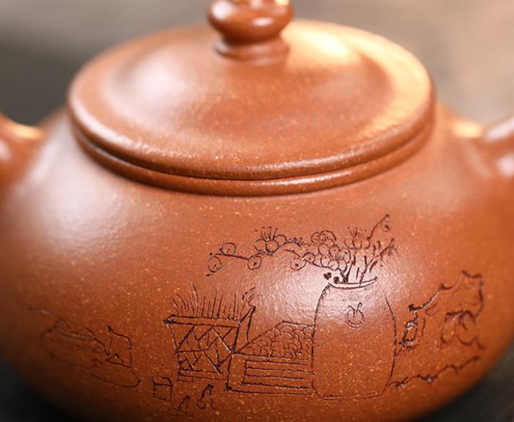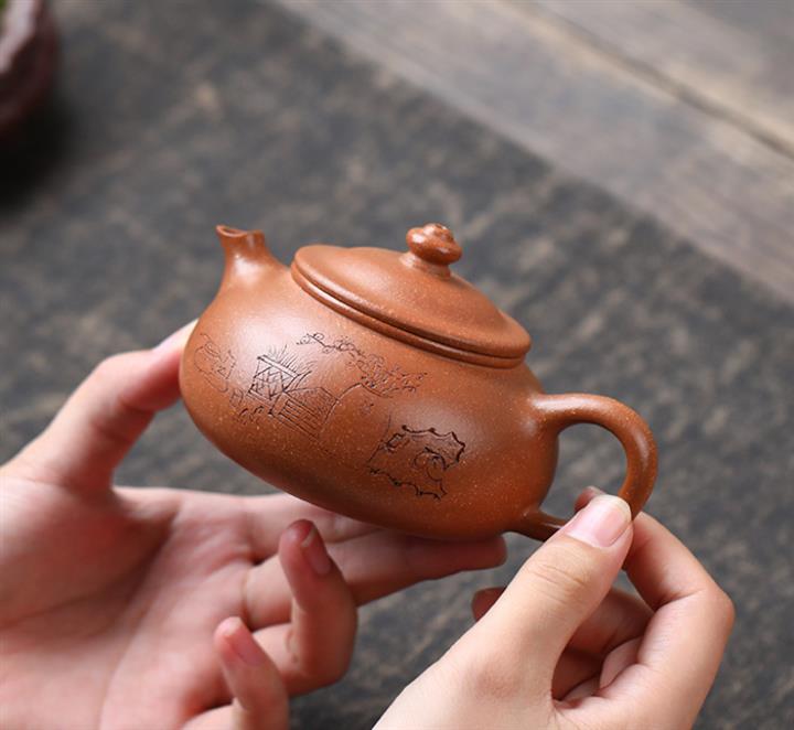 【泥料特點】砂土氣重,似淳實農民,日久使用,漸露鋒芒,養成變化,溫潤莊重。紫砂是壹種雙重氣孔結構的多孔性材質,氣孔微細,密度高。用紫砂壺沏茶,不失原味,且香不渙散,得茶之真香真味。紫砂使用越久,壺身色澤越發光亮照人,氣韻溫雅。紫砂壺長久使用器身會因撫摸擦拭,變得越發溫潤光澤。
