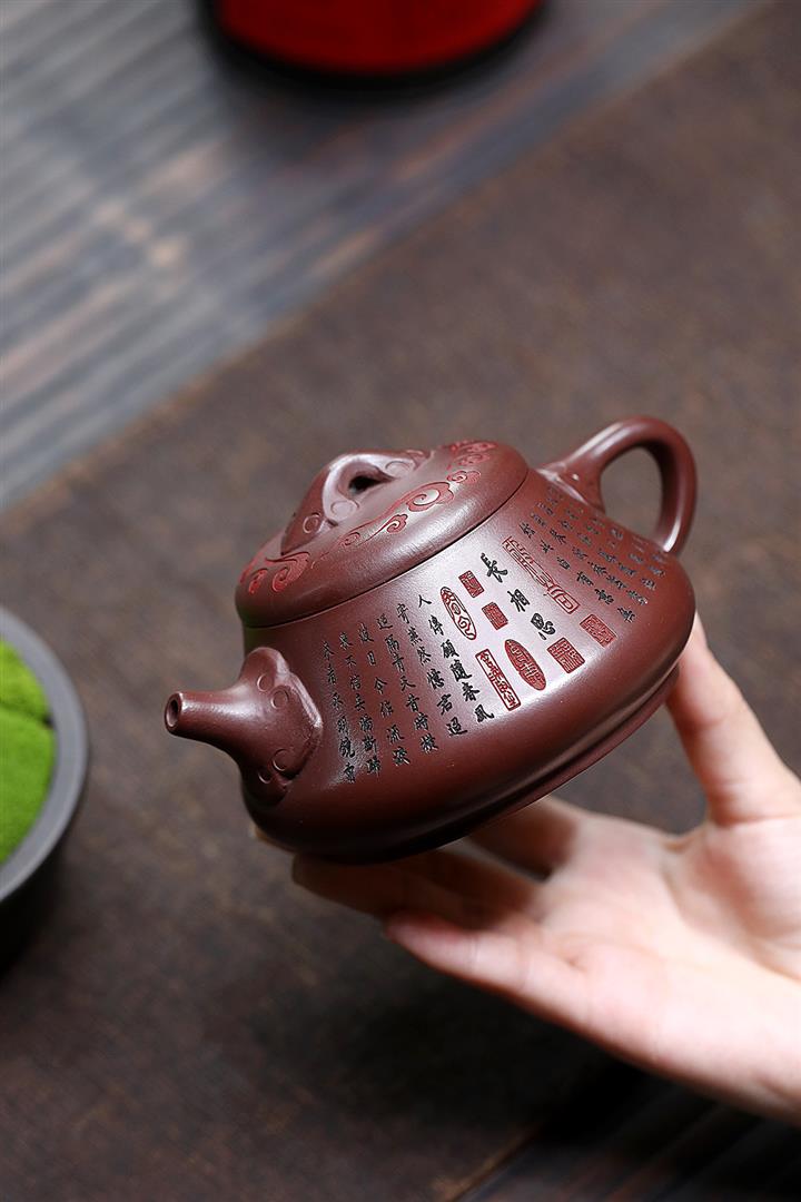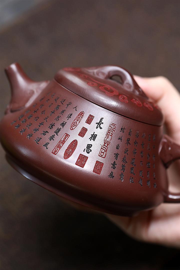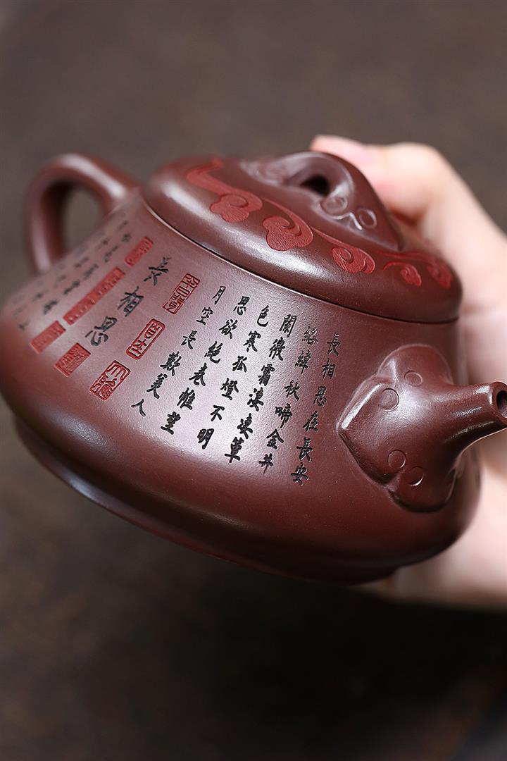 【作品介紹】此款壺形線條流暢,壺把,壺嘴,壺身壹氣呵成栩栩如生,是收藏把玩的好壺,泥料色澤古樸典雅,日久使用,漸露鋒芒,養成變化快,溫潤莊重,用其泡茶,使用的年代久,壺身就溫潤,泡出來的茶湯也就醇郁芳馨。