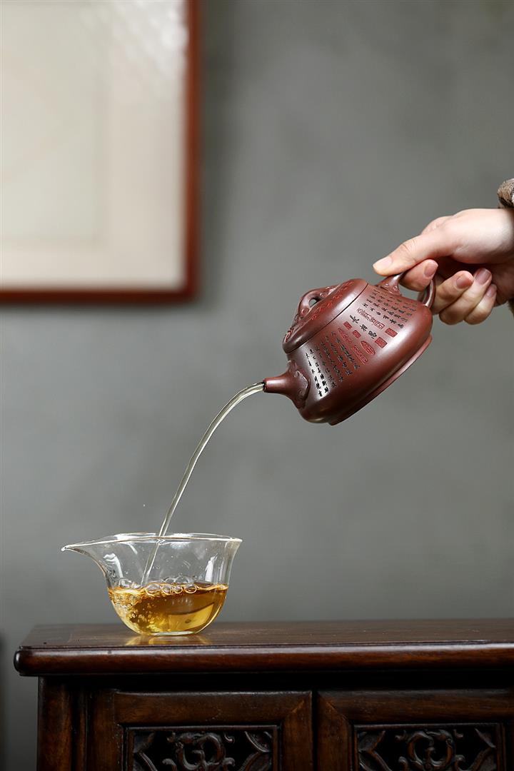 【泥料特點】砂土氣重,似淳實農民,日久使用,漸露鋒芒,養成變化,溫潤莊重。紫砂是壹種雙重氣孔結構的多孔性材質,氣孔微細,密度高。用紫砂壺沏茶,不失原味,且香不渙散,得茶之真香真味。紫砂使用越久,壺身色澤越發光亮照人,氣韻溫雅。紫砂壺長久使用器身會因撫摸擦拭,變得越發溫潤光澤。