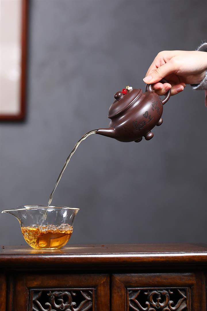 300cc原礦紫紅泥喜上眉梢泡茶壺POT9686