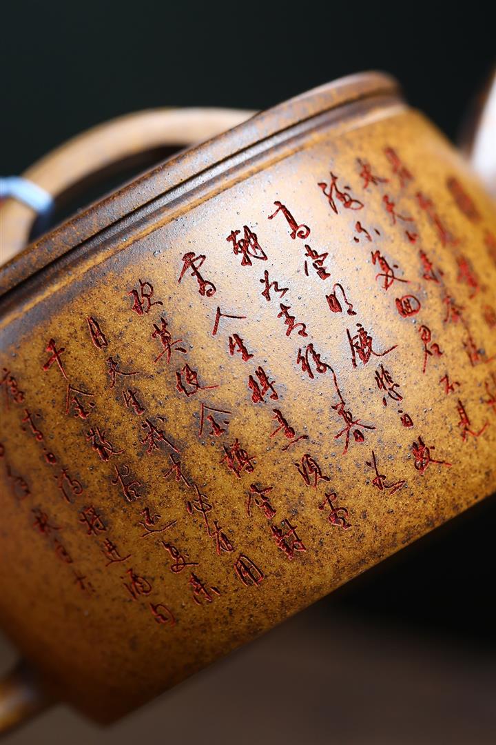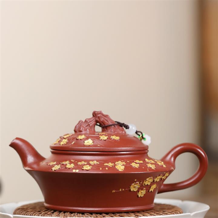 220cc原礦大紅袍描金暗香虛扁泡茶壺POT9694