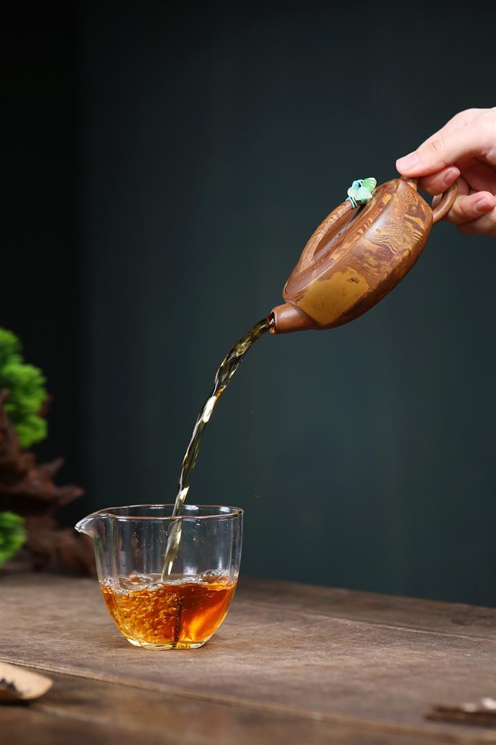 【泥料特點】砂土氣重,似淳實農民,日久使用,漸露鋒芒,養成變化,溫潤莊重。紫砂是壹種雙重氣孔結構的多孔性材質,氣孔微細,密度高。用紫砂壺沏茶,不失原味,且香不渙散,得茶之真香真味。紫砂使用越久,壺身色澤越發光亮照人,氣韻溫雅。紫砂壺長久使用器身會因撫摸擦拭,變得越發溫潤光澤。