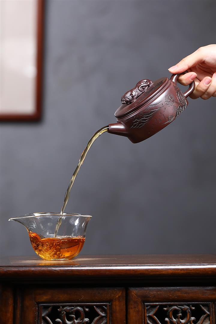 【作品介紹】此款壺形線條流暢,壺把,壺嘴,壺身壹氣呵成栩栩如生,是收藏把玩的好壺,泥料色澤古樸典雅,日久使用,漸露鋒芒,養成變化快,溫潤莊重,用其泡茶,使用的年代久,壺身就溫潤,泡出來的茶湯也就醇郁芳馨。