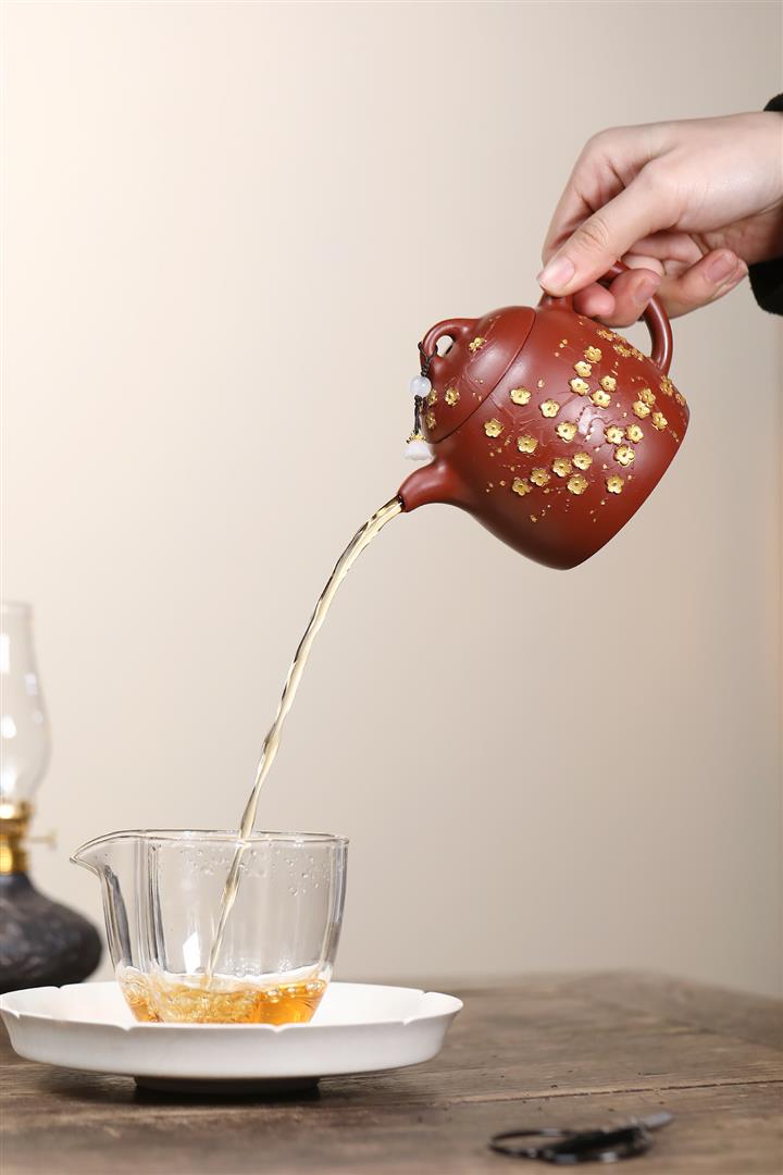 280cc原礦大紅袍堆繪金梅秦權泡茶壺POT9695