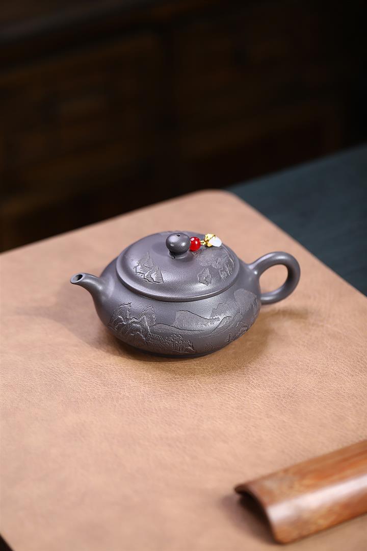 200cc原礦青灰段泥山水明爐泡茶壺POT9699
