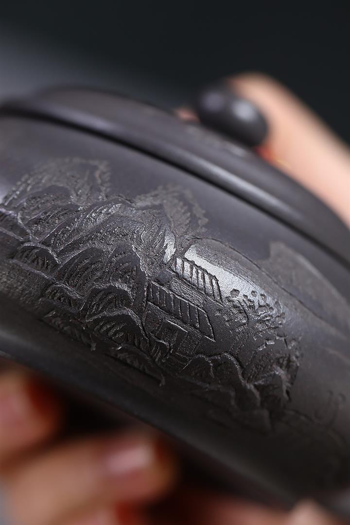 【泥料特點】砂土氣重,似淳實農民,日久使用,漸露鋒芒,養成變化,溫潤莊重。紫砂是壹種雙重氣孔結構的多孔性材質,氣孔微細,密度高。用紫砂壺沏茶,不失原味,且香不渙散,得茶之真香真味。紫砂使用越久,壺身色澤越發光亮照人,氣韻溫雅。紫砂壺長久使用器身會因撫摸擦拭,變得越發溫潤光澤。