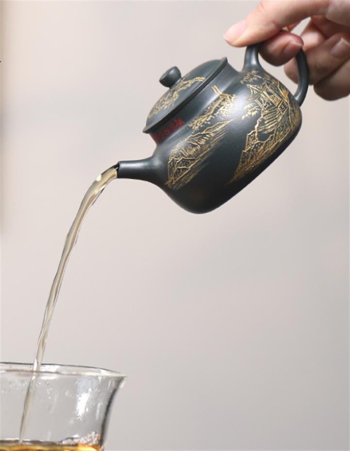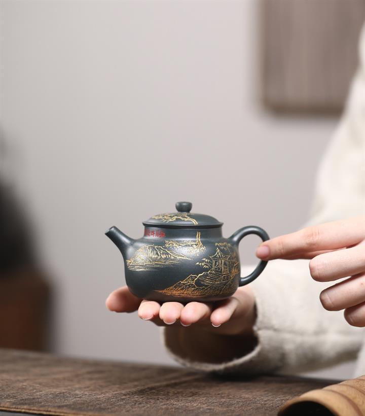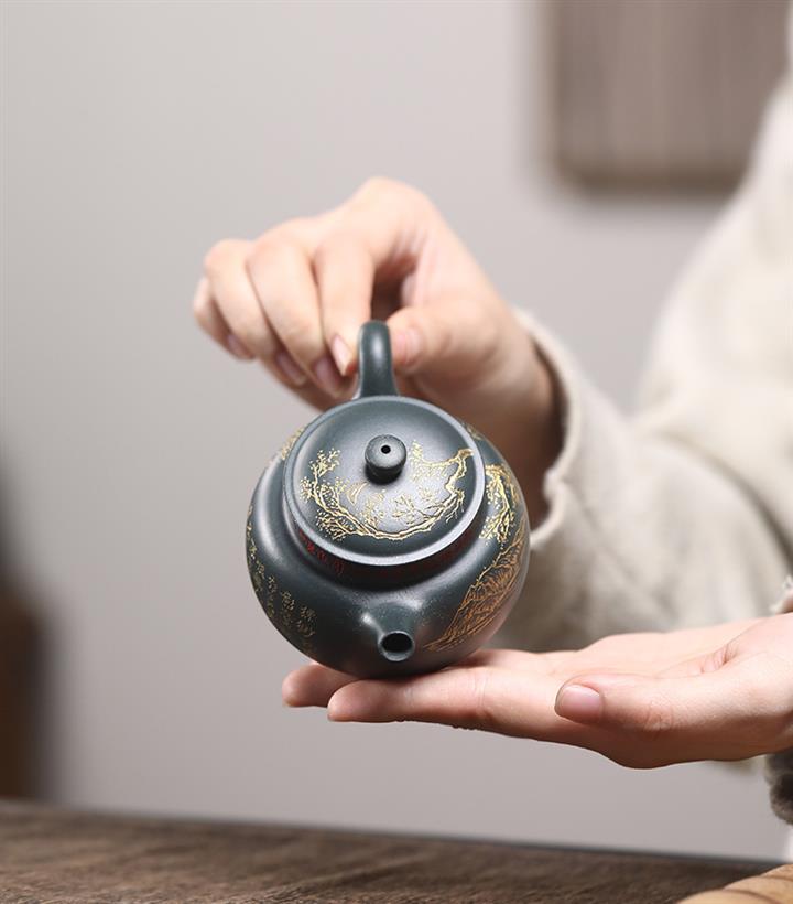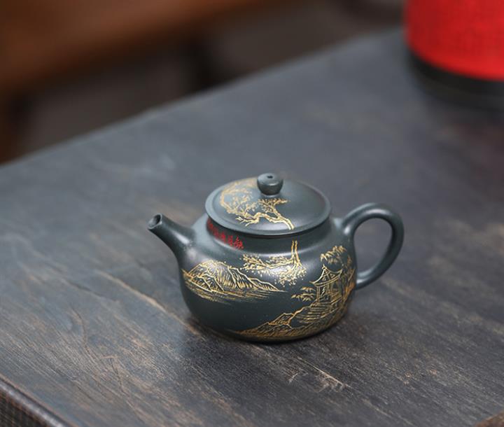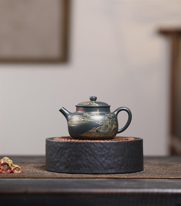 180cc原礦黑泥刻繪觀雲聽雨泡茶壺POT9716