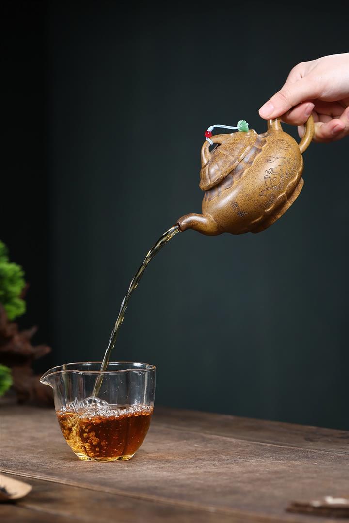 【泥料特點】砂土氣重,似淳實農民,日久使用,漸露鋒芒,養成變化,溫潤莊重。紫砂是壹種雙重氣孔結構的多孔性材質,氣孔微細,密度高。用紫砂壺沏茶,不失原味,且香不渙散,得茶之真香真味。紫砂使用越久,壺身色澤越發光亮照人,氣韻溫雅。紫砂壺長久使用器身會因撫摸擦拭,變得越發溫潤光澤。