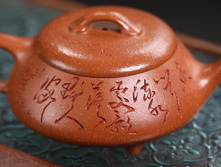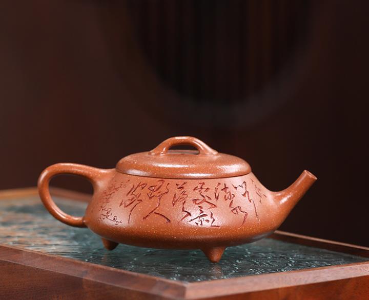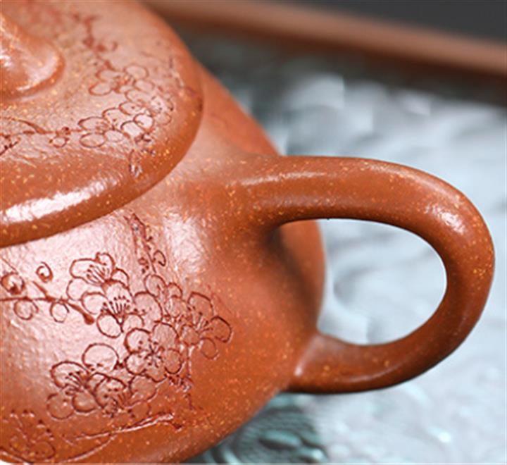 【泥料特點】砂土氣重,似淳實農民,日久使用,漸露鋒芒,養成變化,溫潤莊重。紫砂是壹種雙重氣孔結構的多孔性材質,氣孔微細,密度高。用紫砂壺沏茶,不失原味,且香不渙散,得茶之真香真味。紫砂使用越久,壺身色澤越發光亮照人,氣韻溫雅。紫砂壺長久使用器身會因撫摸擦拭,變得越發溫潤光澤。