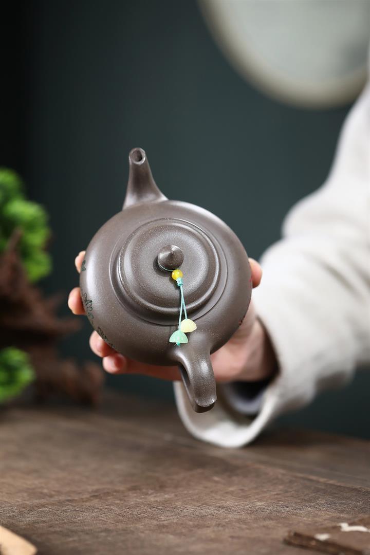 【作品介紹】此款壺形線條流暢,壺把,壺嘴,壺身壹氣呵成栩栩如生,是收藏把玩的好壺,泥料色澤古樸典雅,日久使用,漸露鋒芒,養成變化快,溫潤莊重,用其泡茶,使用的年代久,壺身就溫潤,泡出來的茶湯也就醇郁芳馨。