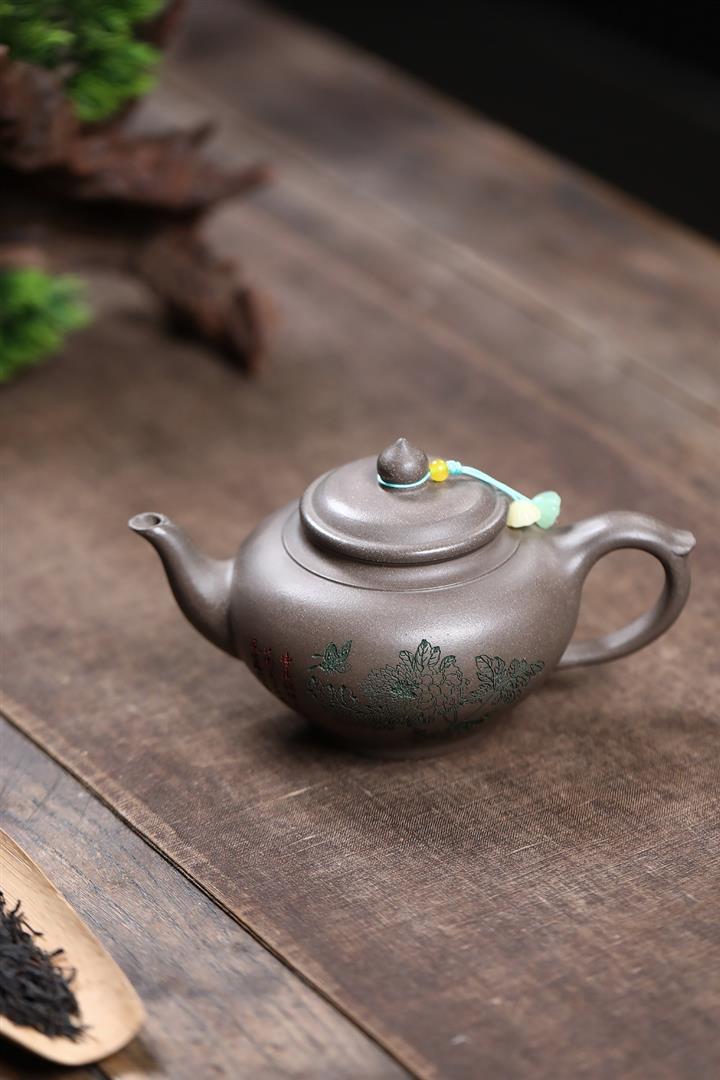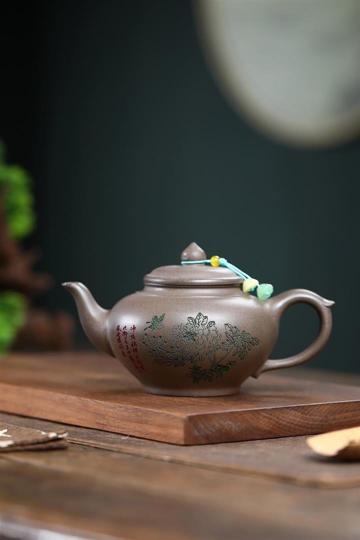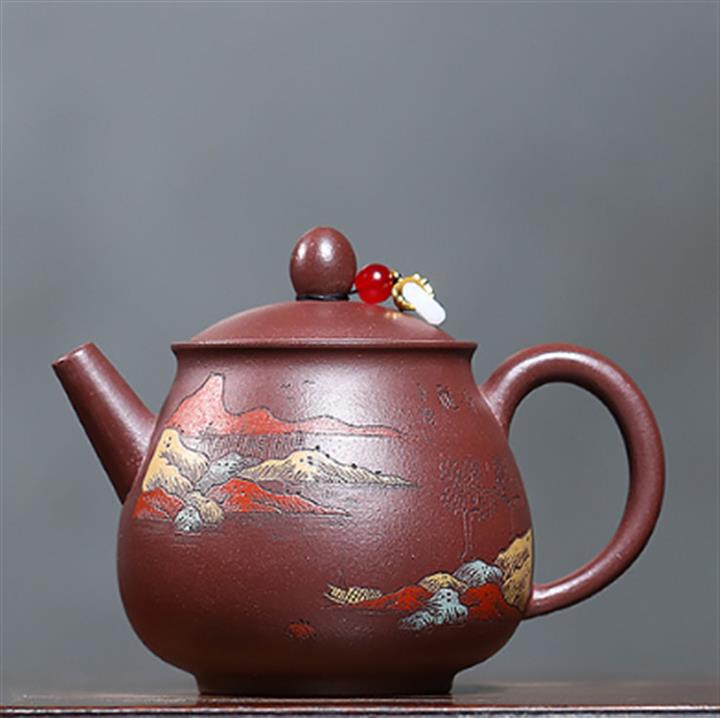 220cc原礦紫泥山水高潘壺泡茶壺POT9745