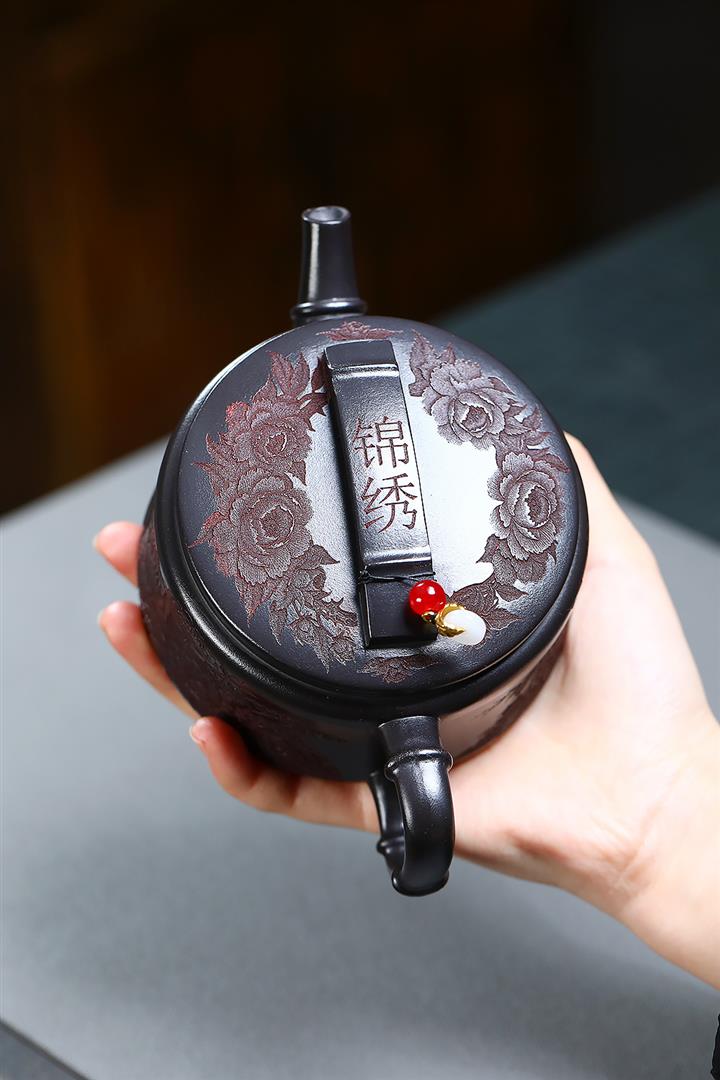 330cc原礦玄鐵石黃錦繡漢瓦茶壺POT9751