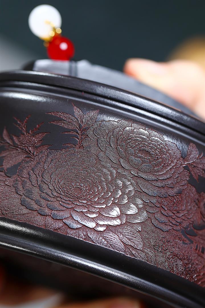 【泥料特點】砂土氣重,似淳實農民,日久使用,漸露鋒芒,養成變化,溫潤莊重。紫砂是壹種雙重氣孔結構的多孔性材質,氣孔微細,密度高。用紫砂壺沏茶,不失原味,且香不渙散,得茶之真香真味。紫砂使用越久,壺身色澤越發光亮照人,氣韻溫雅。紫砂壺長久使用器身會因撫摸擦拭,變得越發溫潤光澤。