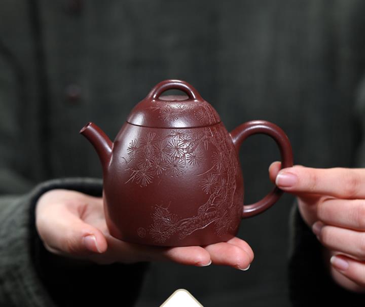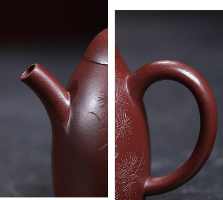 【作品介紹】此款壺形線條流暢,壺把,壺嘴,壺身壹氣呵成栩栩如生,是收藏把玩的好壺,泥料色澤古樸典雅,日久使用,漸露鋒芒,養成變化快,溫潤莊重,用其泡茶,使用的年代久,壺身就溫潤,泡出來的茶湯也就醇郁芳馨。