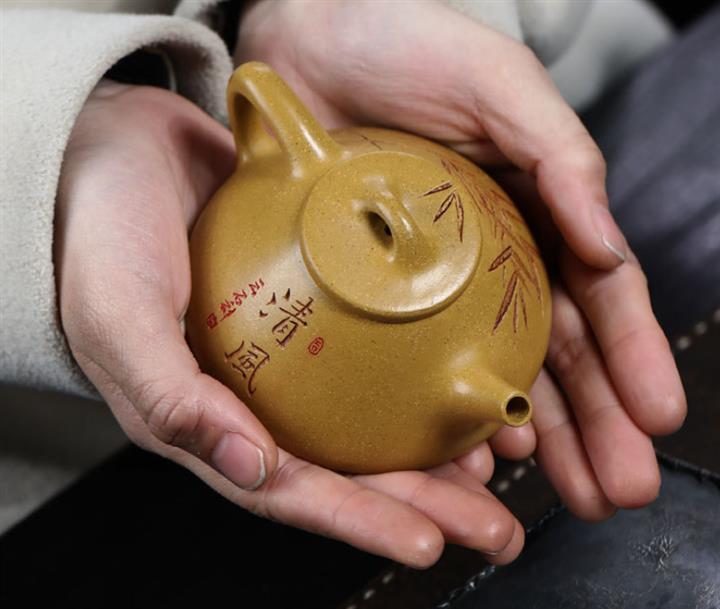 100cc原礦黃降坡泥四方雲竹薄胎小品茶壺POT9761