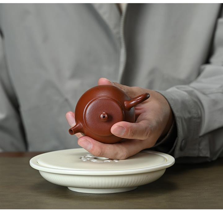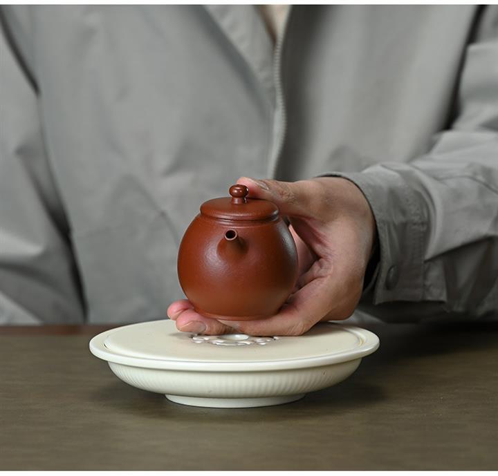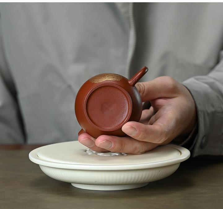 【泥料特點】砂土氣重,似淳實農民,日久使用,漸露鋒芒,養成變化,溫潤莊重。紫砂是壹種雙重氣孔結構的多孔性材質,氣孔微細,密度高。用紫砂壺沏茶,不失原味,且香不渙散,得茶之真香真味。紫砂使用越久,壺身色澤越發光亮照人,氣韻溫雅。紫砂壺長久使用器身會因撫摸擦拭,變得越發溫潤光澤。
