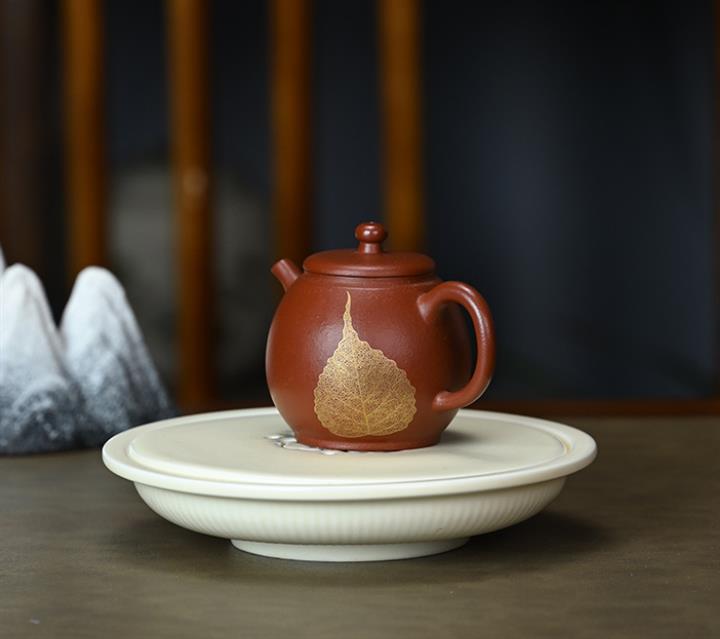 150cc原礦大紅袍描金明式金葉茶壺POT9756