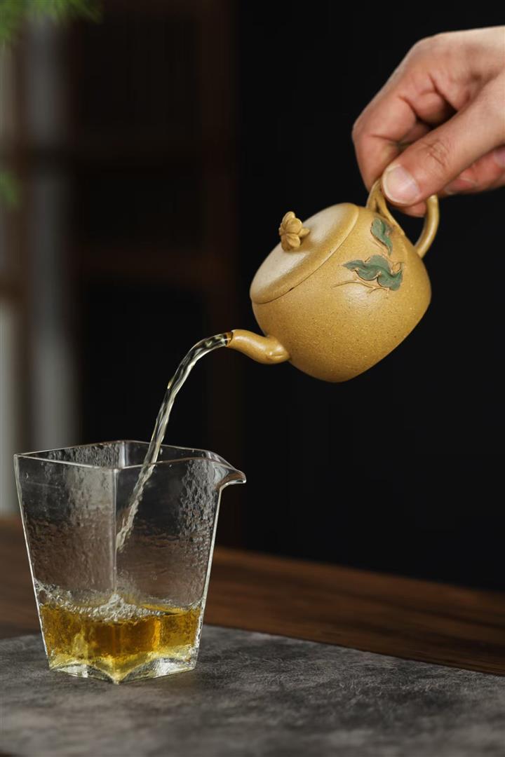 【泥料特點】砂土氣重,似淳實農民,日久使用,漸露鋒芒,養成變化,溫潤莊重。紫砂是壹種雙重氣孔結構的多孔性材質,氣孔微細,密度高。用紫砂壺沏茶,不失原味,且香不渙散,得茶之真香真味。紫砂使用越久,壺身色澤越發光亮照人,氣韻溫雅。紫砂壺長久使用器身會因撫摸擦拭,變得越發溫潤光澤。