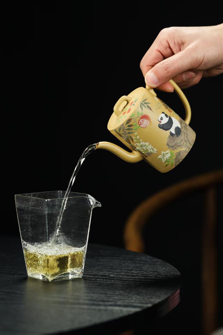 【泥料特點】砂土氣重,似淳實農民,日久使用,漸露鋒芒,養成變化,溫潤莊重。紫砂是壹種雙重氣孔結構的多孔性材質,氣孔微細,密度高。用紫砂壺沏茶,不失原味,且香不渙散,得茶之真香真味。紫砂使用越久,壺身色澤越發光亮照人,氣韻溫雅。紫砂壺長久使用器身會因撫摸擦拭,變得越發溫潤光澤。