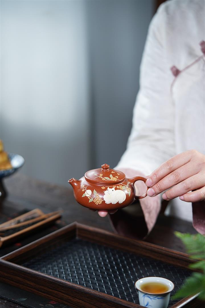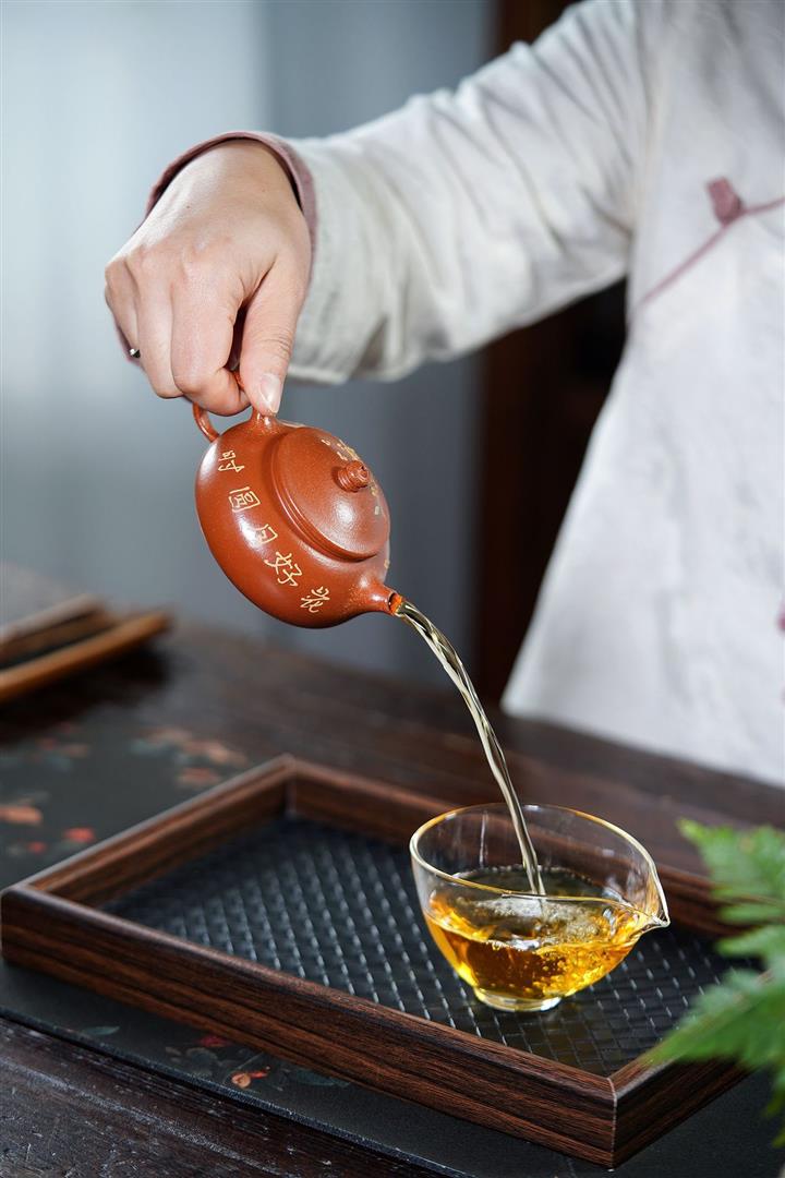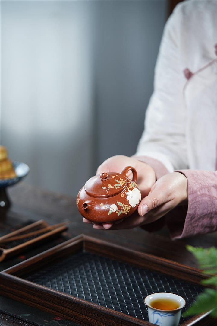 【泥料特點】砂土氣重,似淳實農民,日久使用,漸露鋒芒,養成變化,溫潤莊重。紫砂是壹種雙重氣孔結構的多孔性材質,氣孔微細,密度高。用紫砂壺沏茶,不失原味,且香不渙散,得茶之真香真味。紫砂使用越久,壺身色澤越發光亮照人,氣韻溫雅。紫砂壺長久使用器身會因撫摸擦拭,變得越發溫潤光澤。