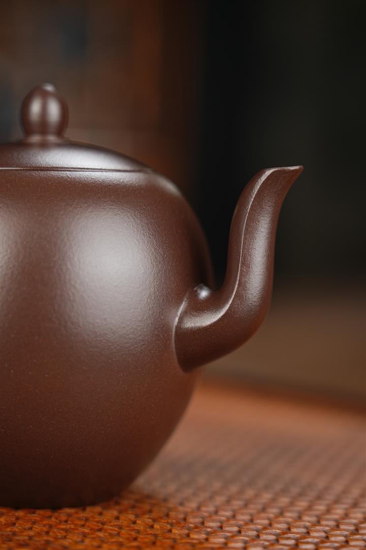 【作品介紹】此款壺形線條流暢,壺把,壺嘴,壺身壹氣呵成栩栩如生,是收藏把玩的好壺,泥料色澤古樸典雅,日久使用,漸露鋒芒,養成變化快,溫潤莊重,用其泡茶,使用的年代久,壺身就溫潤,泡出來的茶湯也就醇郁芳馨。