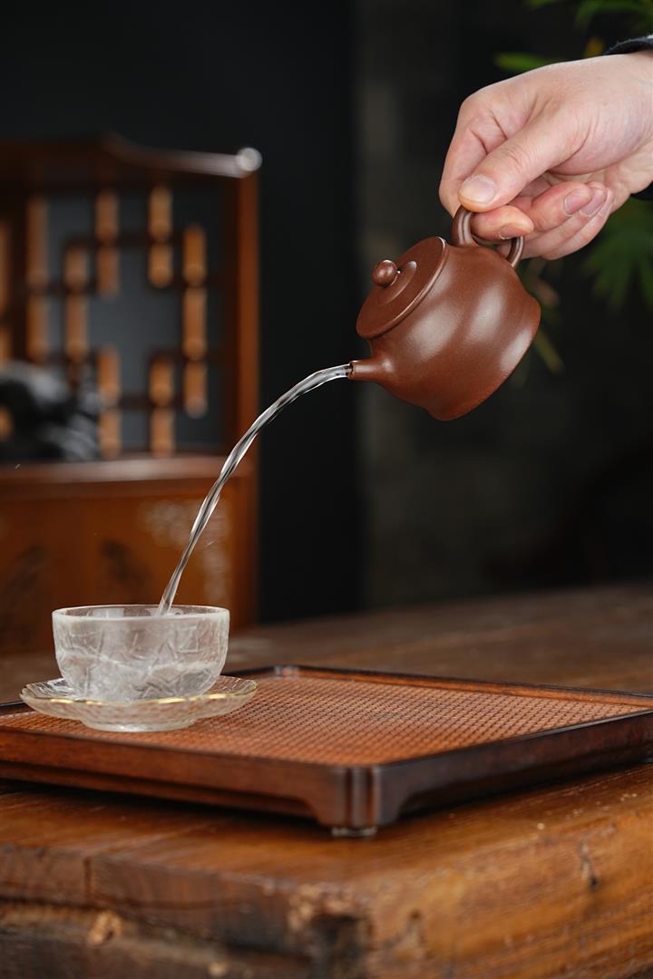 【泥料特點】砂土氣重,似淳實農民,日久使用,漸露鋒芒,養成變化,溫潤莊重。紫砂是壹種雙重氣孔結構的多孔性材質,氣孔微細,密度高。用紫砂壺沏茶,不失原味,且香不渙散,得茶之真香真味。紫砂使用越久,壺身色澤越發光亮照人,氣韻溫雅。紫砂壺長久使用器身會因撫摸擦拭,變得越發溫潤光澤。