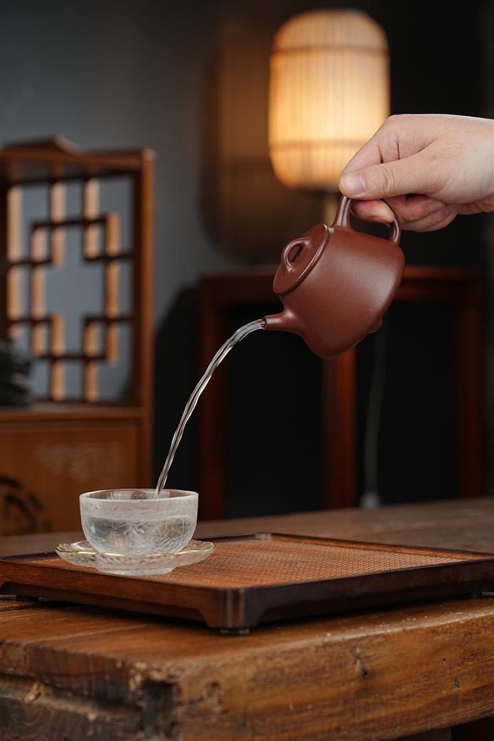 【泥料特點】砂土氣重,似淳實農民,日久使用,漸露鋒芒,養成變化,溫潤莊重。紫砂是壹種雙重氣孔結構的多孔性材質,氣孔微細,密度高。用紫砂壺沏茶,不失原味,且香不渙散,得茶之真香真味。紫砂使用越久,壺身色澤越發光亮照人,氣韻溫雅。紫砂壺長久使用器身會因撫摸擦拭,變得越發溫潤光澤。