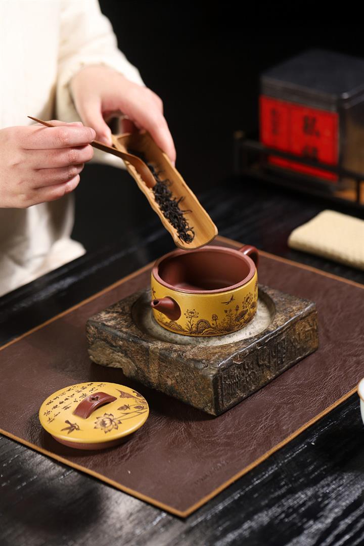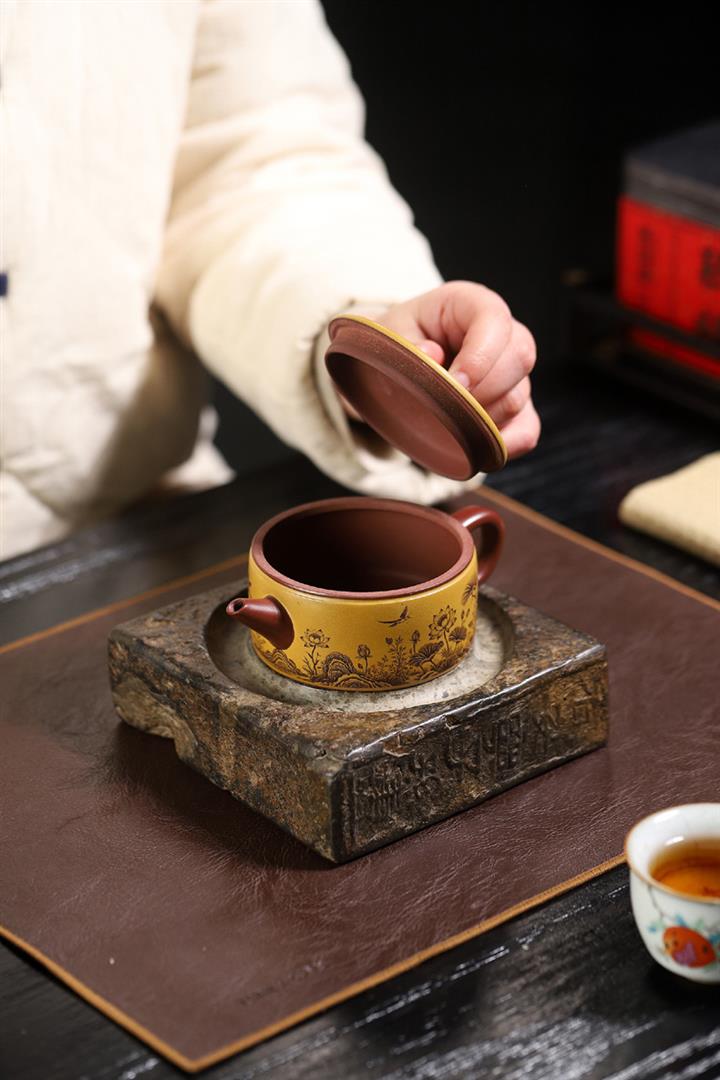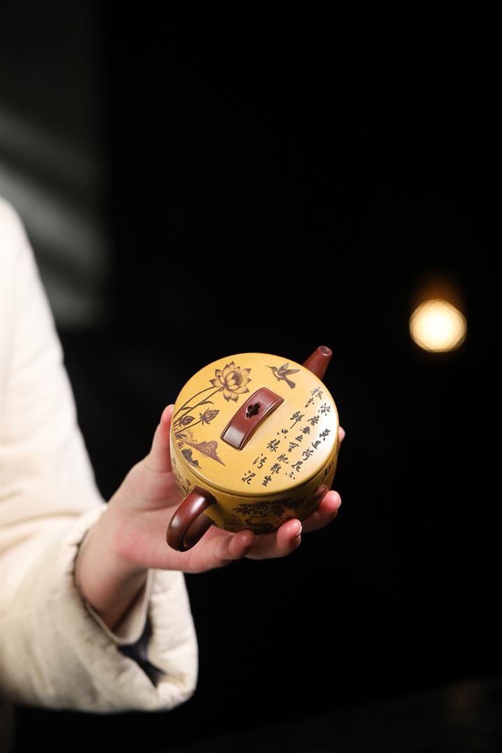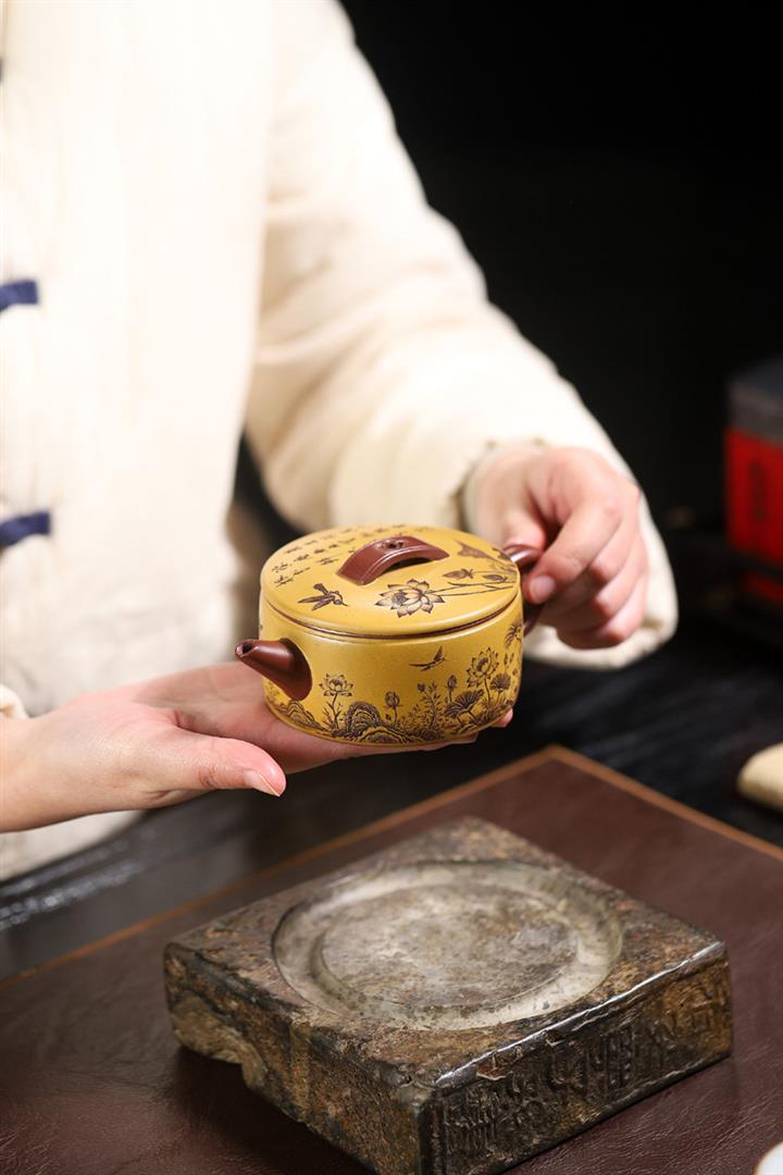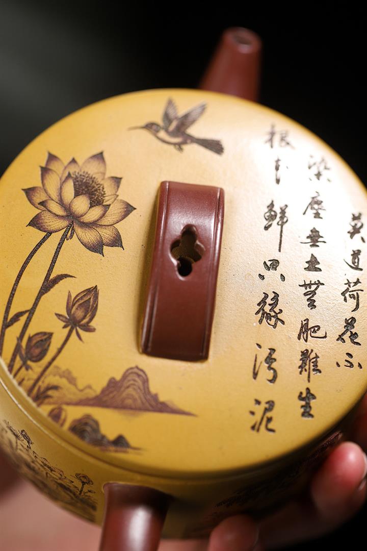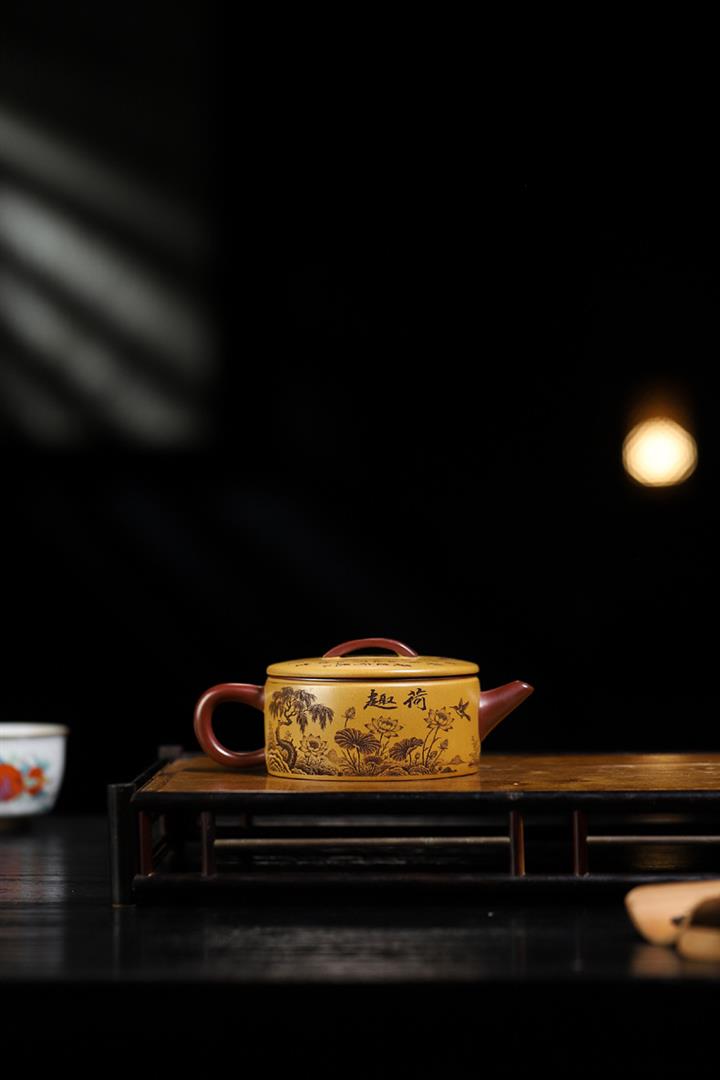 180cc原礦龍血砂/黃金朱泥荷趣漢瓦泡茶壺POT9806