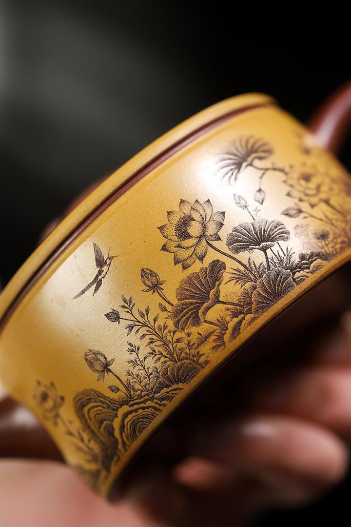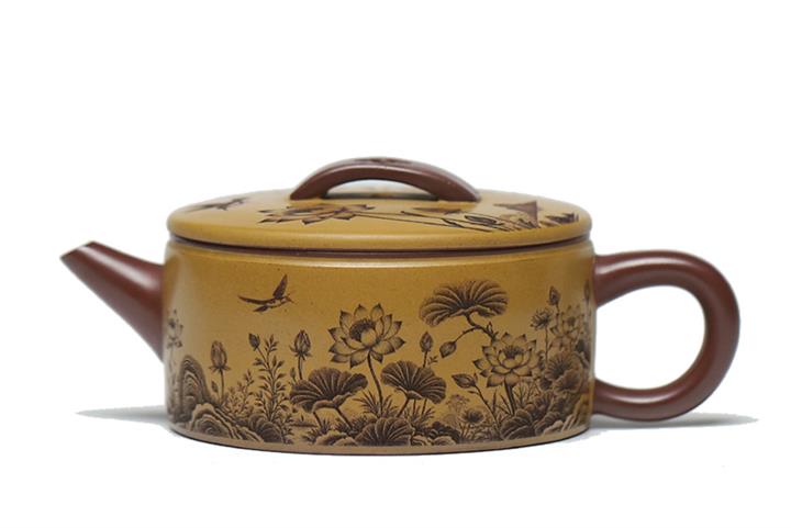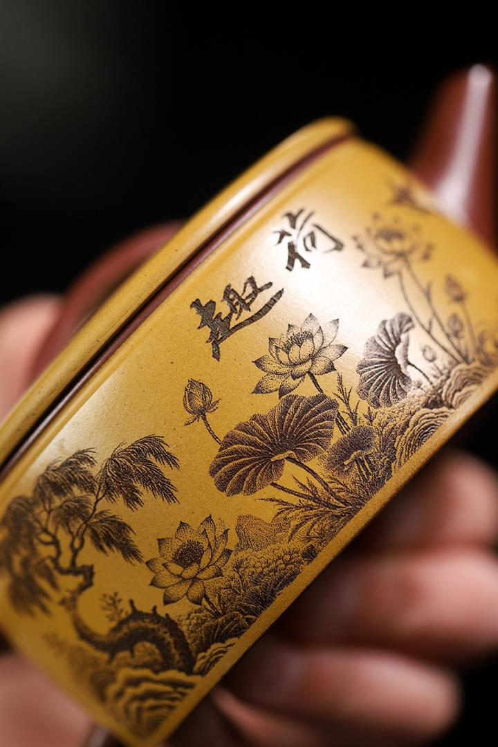 170cc原礦紫泥刻繪寒江泡茶壺POT9815