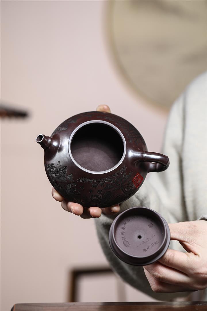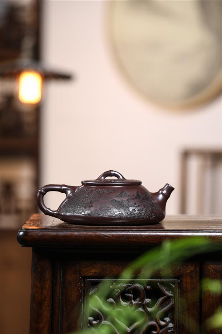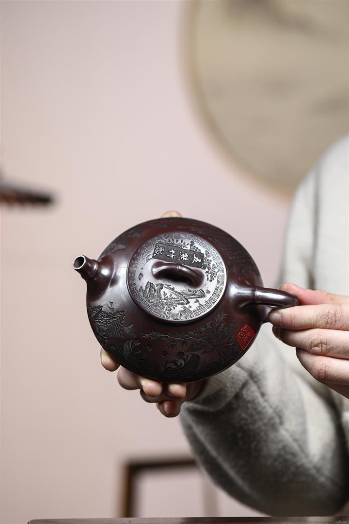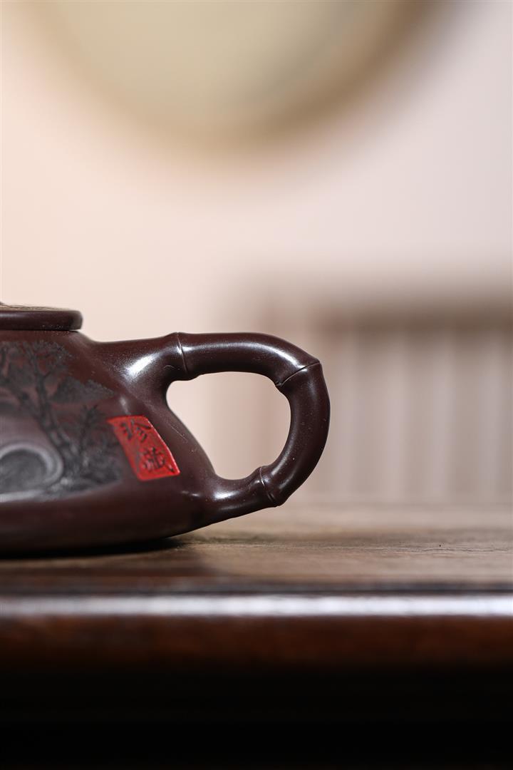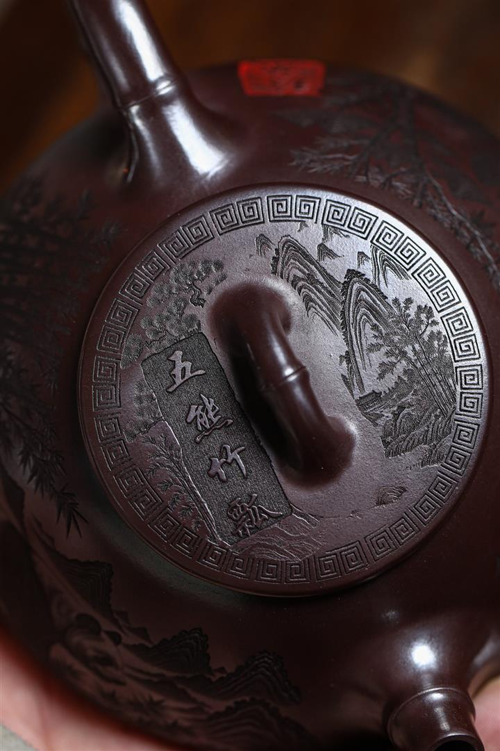 170cc原礦紫泥刻繪寒江泡茶壺POT9815