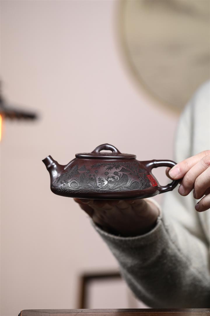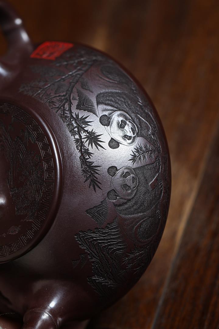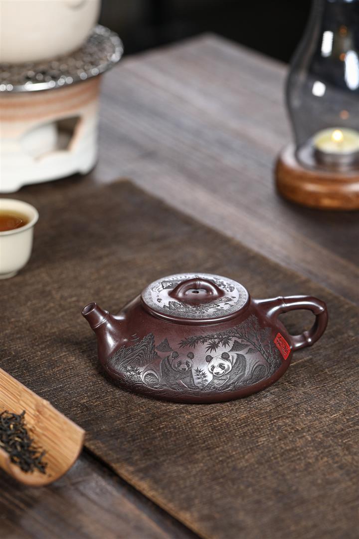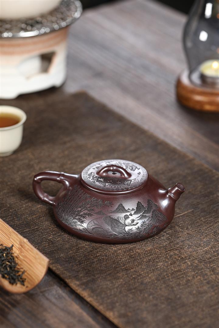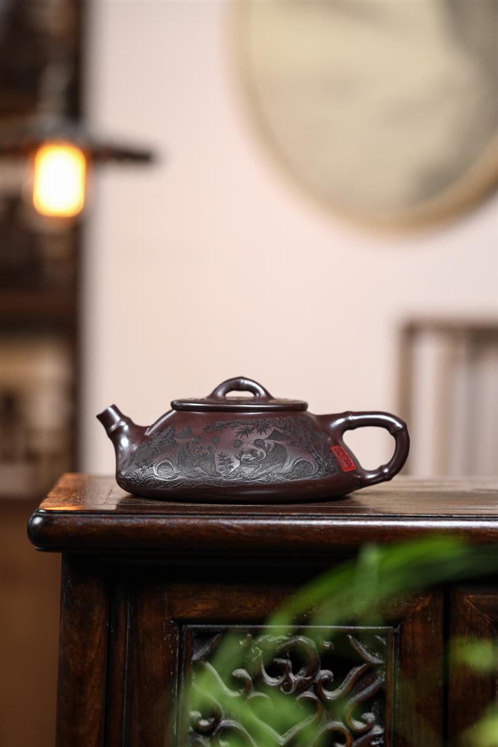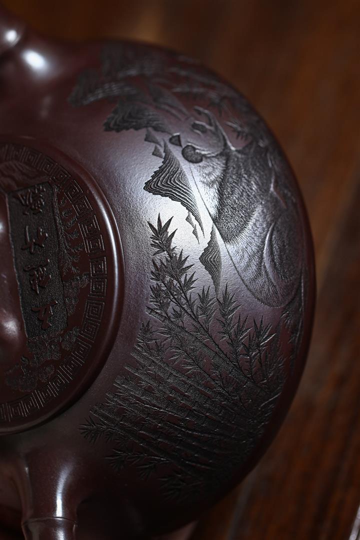 170cc原礦紫泥刻繪寒江泡茶壺POT9815