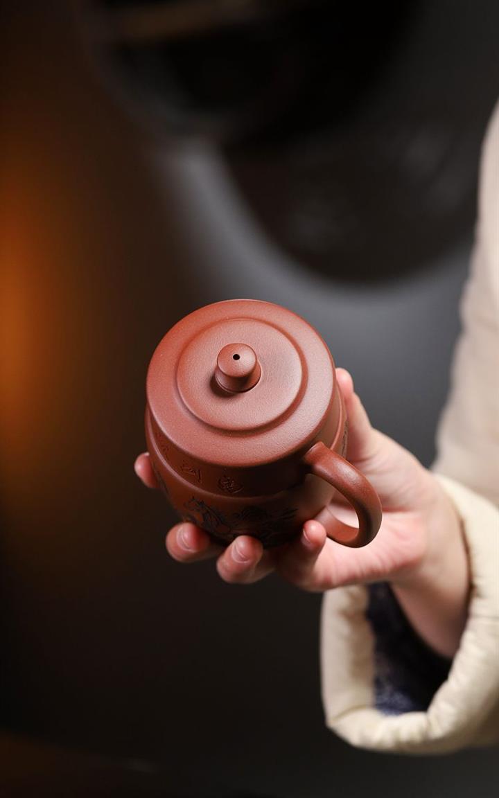 170cc原礦紫泥刻繪寒江泡茶壺POT9815